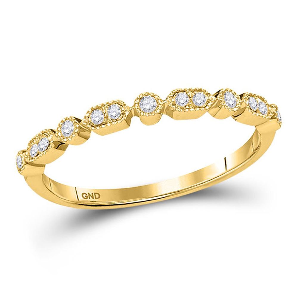 REF-17W6H - 1/8 CTW Womens Round Diamond Stackable Band Ring 10kt Yellow Gold - REF-17W6H