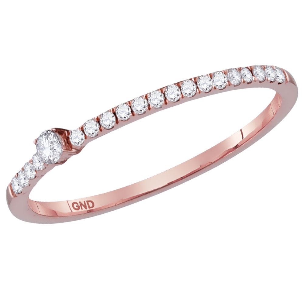 REF-16T4V - 1/8 CTW Womens Round Diamond Stackable Band Ring 14kt Rose Gold - REF-16T4V