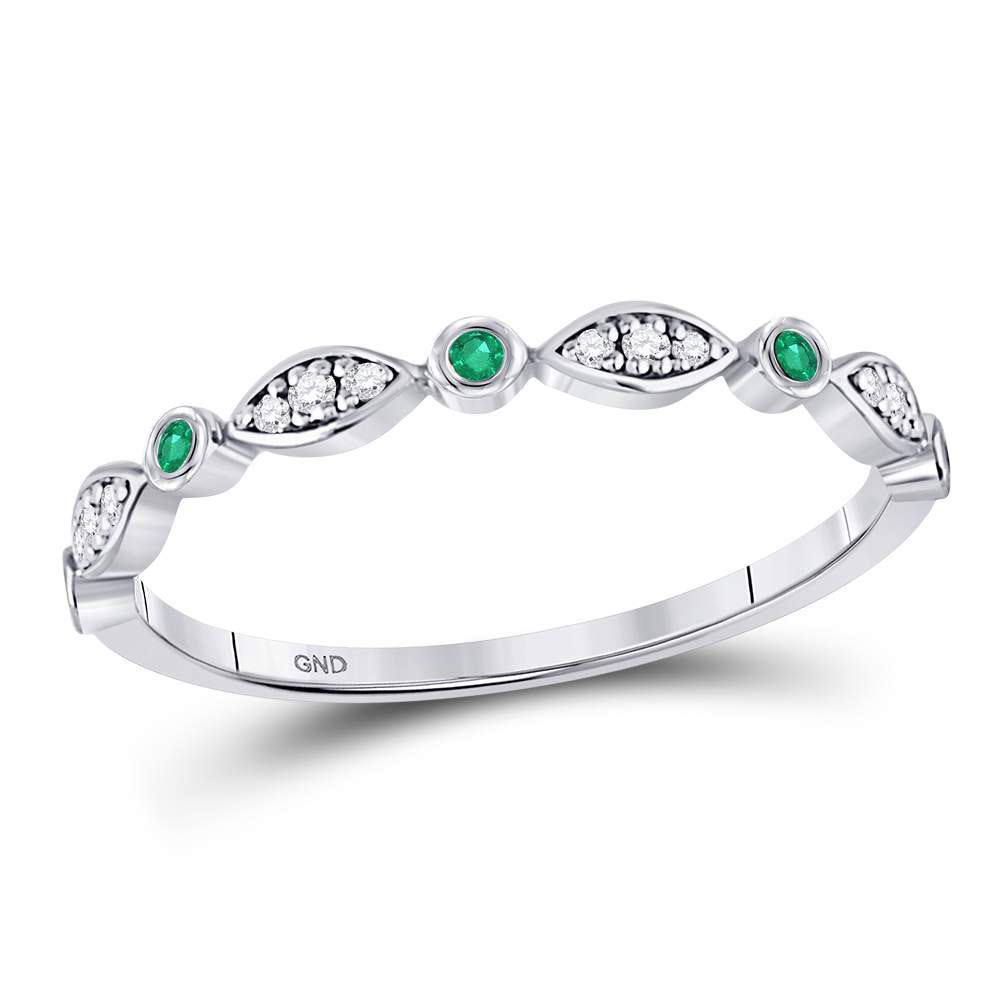 REF-16T4V - 1/8 CTW Womens Round Emerald Diamond Marquise Dot Stackable Band Ring 10kt White Gold - REF-16T4V