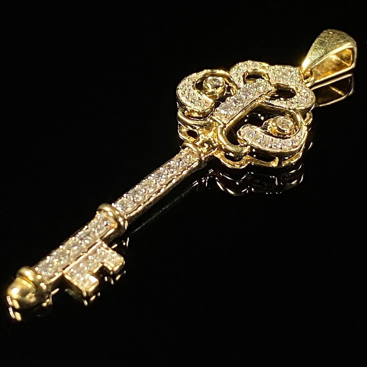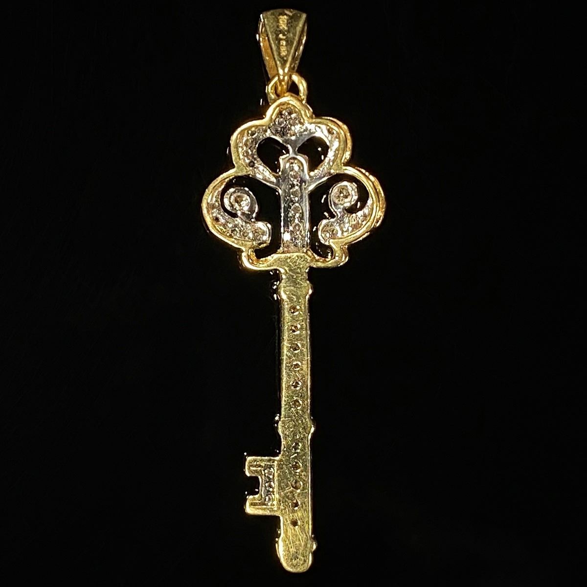 1.8 DWT 10 KT Gold Key Pendant w/ Diamond Lining