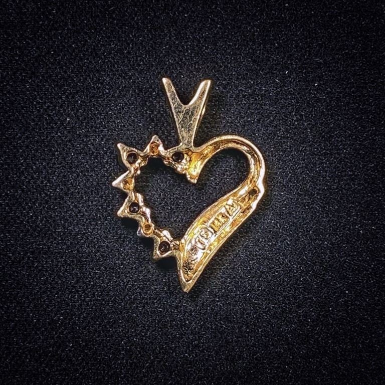 1.8 DWT 14 KT Gold Hrt Pendant w/ Dimd & Gem Linin
