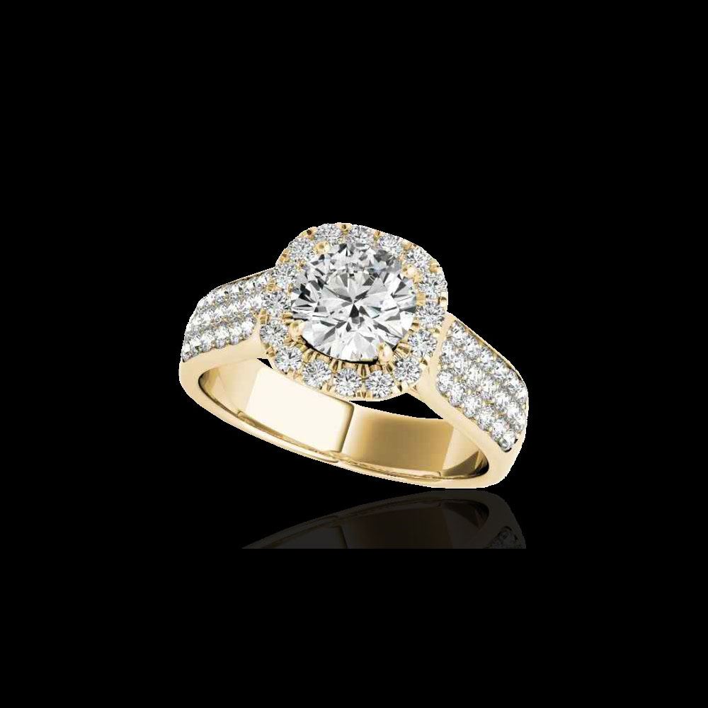 1.8 ctw Certified Diamond Solitaire Halo Ring 10K Yellow Gold