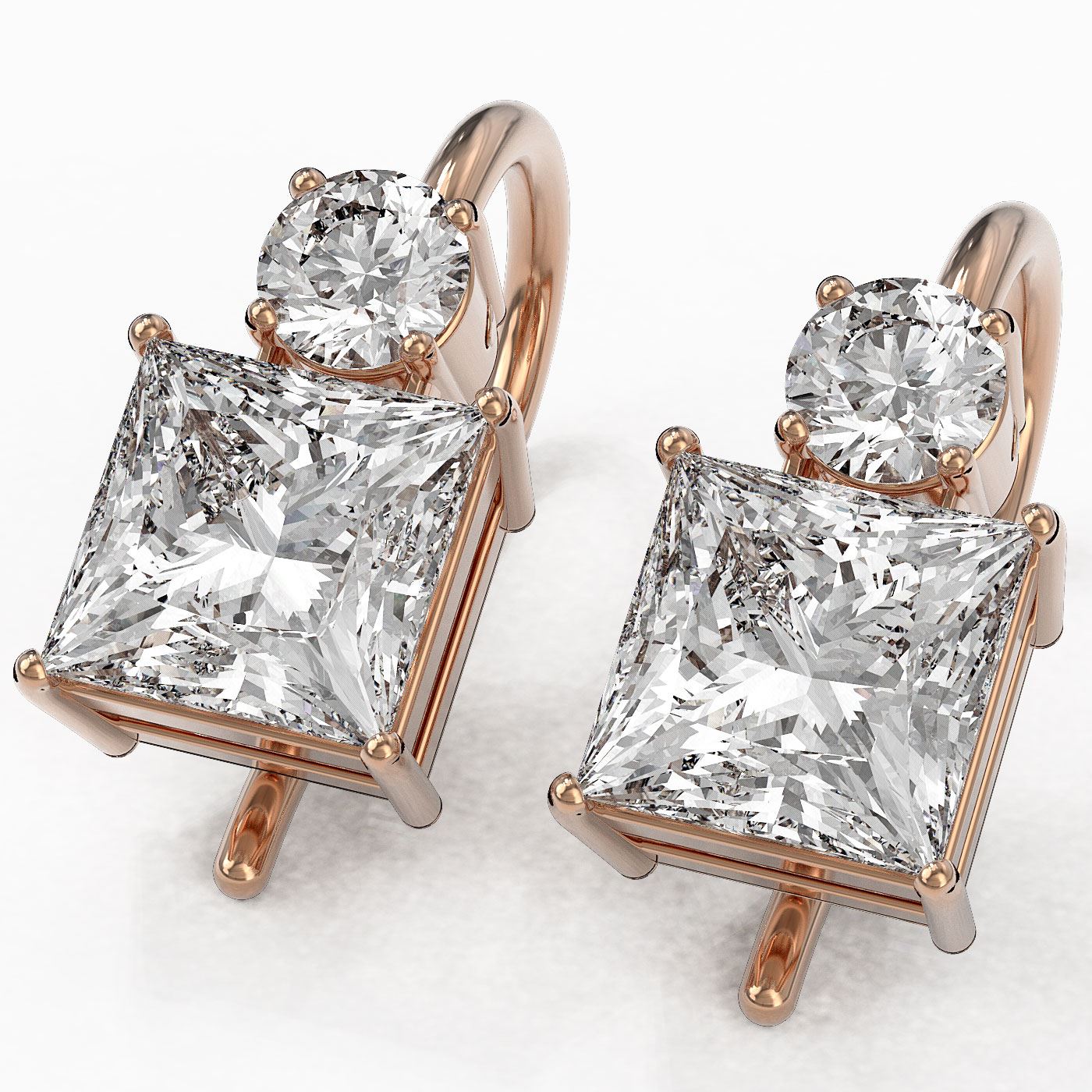 SKU: 48514 ---- 1.8 ctw Princess Cut Diamond Designer Earrings 18K Rose Gold