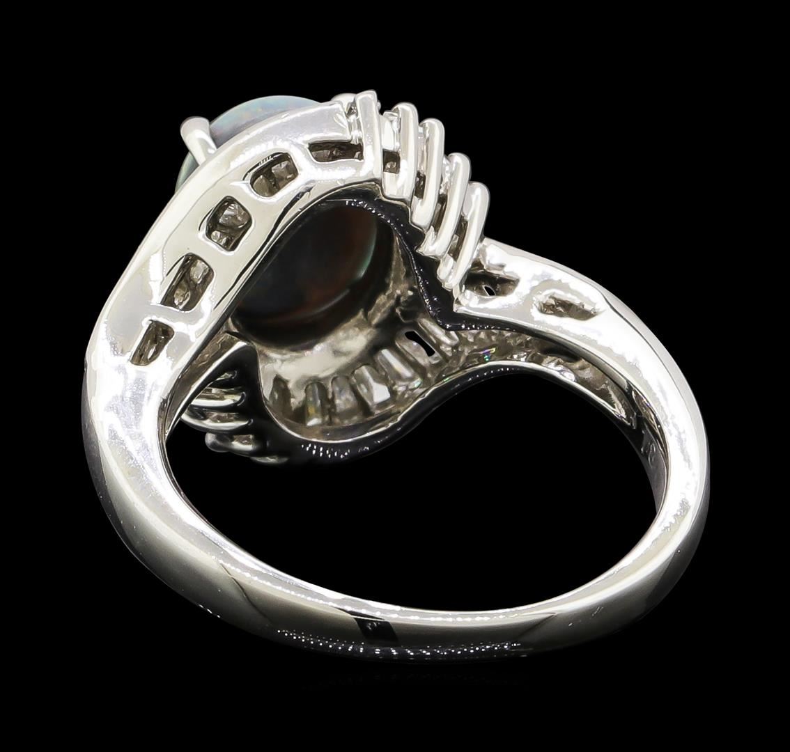 One ring featuring: Platinum containing Black Opal with a total weight of 1.80ct and Diamonds with a total weight of 0.60ct. Total Weight of Ring: 7.7 grams.