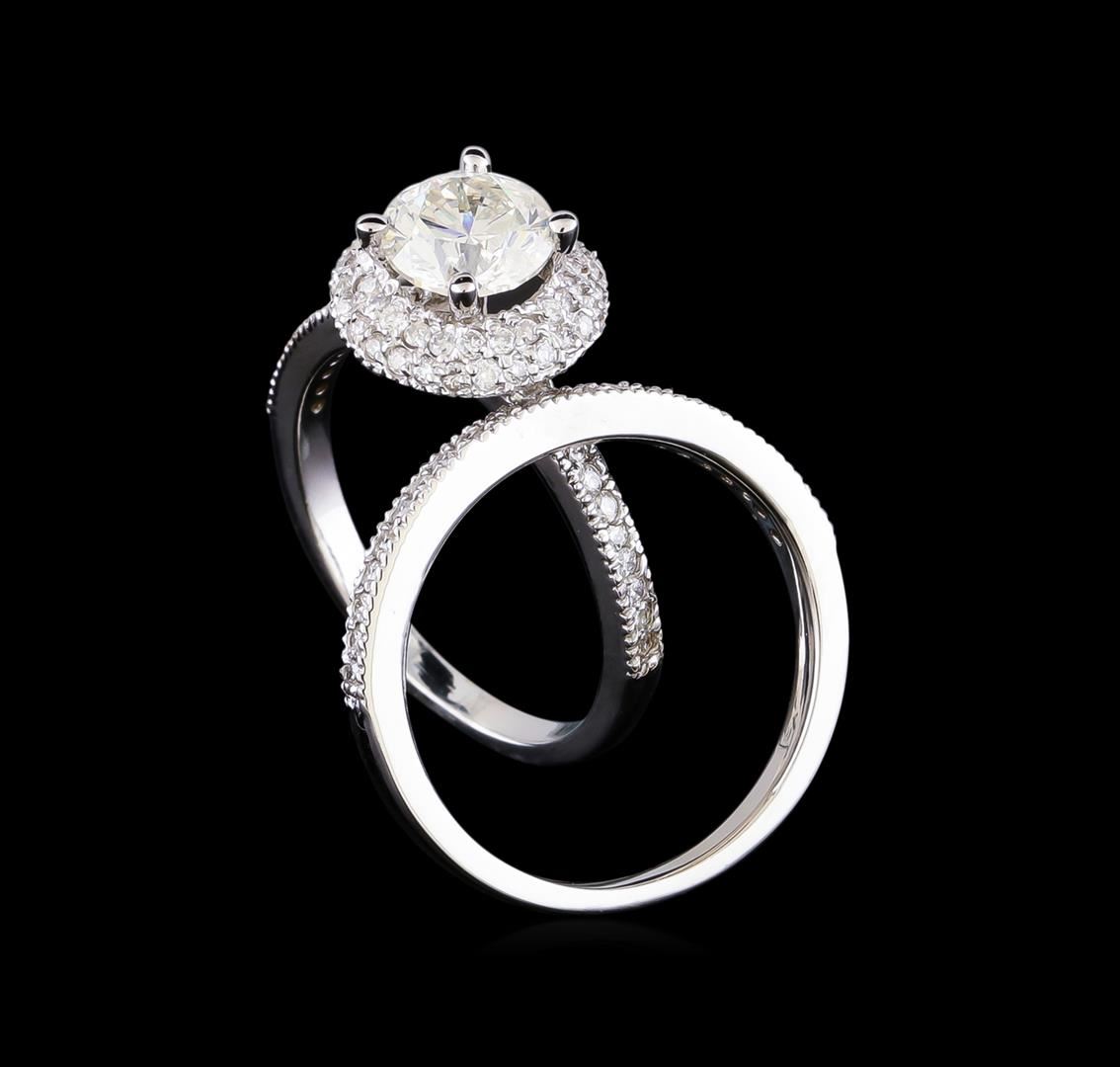 One electronically tested 14KT white gold lady's cast wedding set rings with a double halo with a bright polish finish. The featured lady's ring set has a double shank measuring 3.7 millimeters in width. Identified with markings of "14K". Condition is new, good workmanship. Containing: One prong set round brilliant cut diamond, measuring 6.65 - 6.63 x 4.48mm (depth est.) approximate weight of 1.20ct. Graded in the setting. Clarity: SI-2. Color: I - Very Good Forty-Two prong set round brilliant cut diamonds, measuring 1.30 - 1.20 x 0.78mm (depth est.) approximate total weight of 42 Stones = 0.32ct. Graded in the setting. Clarity: VS-2 to SI-2. Color: H - I. Cut Good Forty-Eight prong set round brilliant cut diamonds, measuring 1.20 - 1.10 x 0.71mm (depth est.) approximate total weight of 48 Stones = 0.28ct. Graded in the setting. Clarity: SI-1 to SI-2. Color: G - Good. Total Weight of Diamonds 1.80ct. Total Weight of Rings 5.60gm GAS Appraised at $18,175.00.