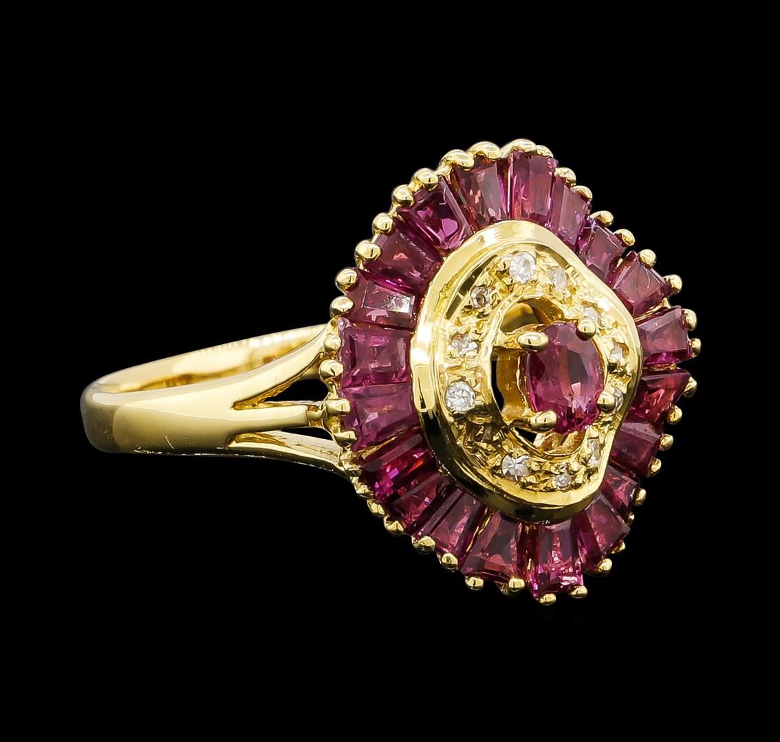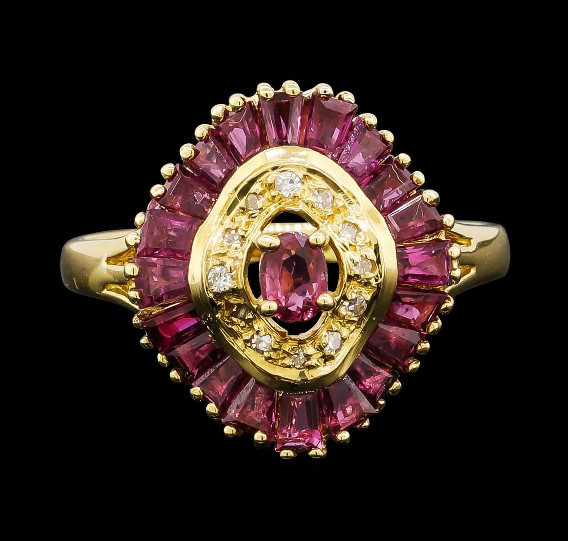 One ring featuring: 18KT Yellow Gold containing Ruby with a total weight of 1.80ct and Diamonds with a total weight of 0.06ct. Total Weight of Ring: 4.7 grams.