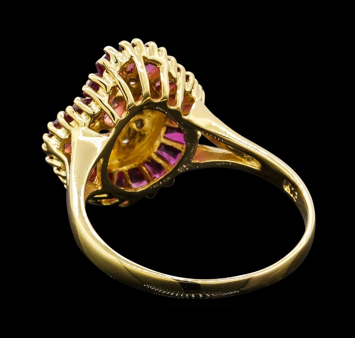 One ring featuring: 18KT Yellow Gold containing Ruby with a total weight of 1.80ct and Diamonds with a total weight of 0.06ct. Total Weight of Ring: 4.7 grams.