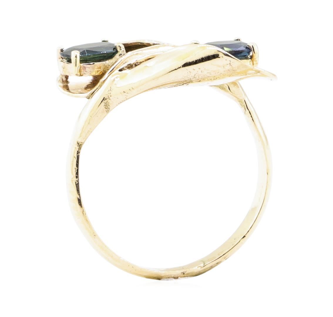 One ring with a bypass floral motif featuring: 14KT yellow gold weighing 4.6 grams containing two blue sapphires weighing 1.80 ctw.