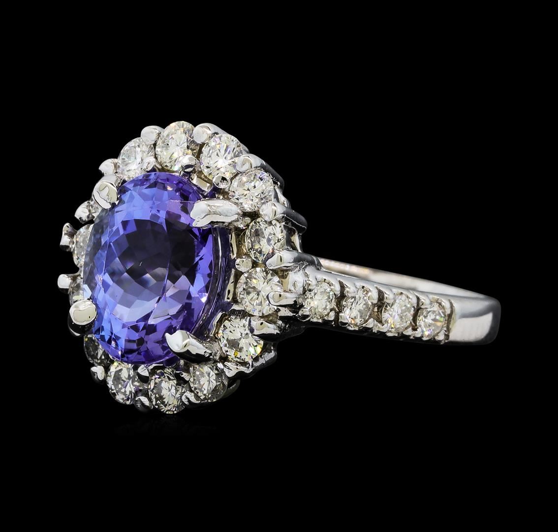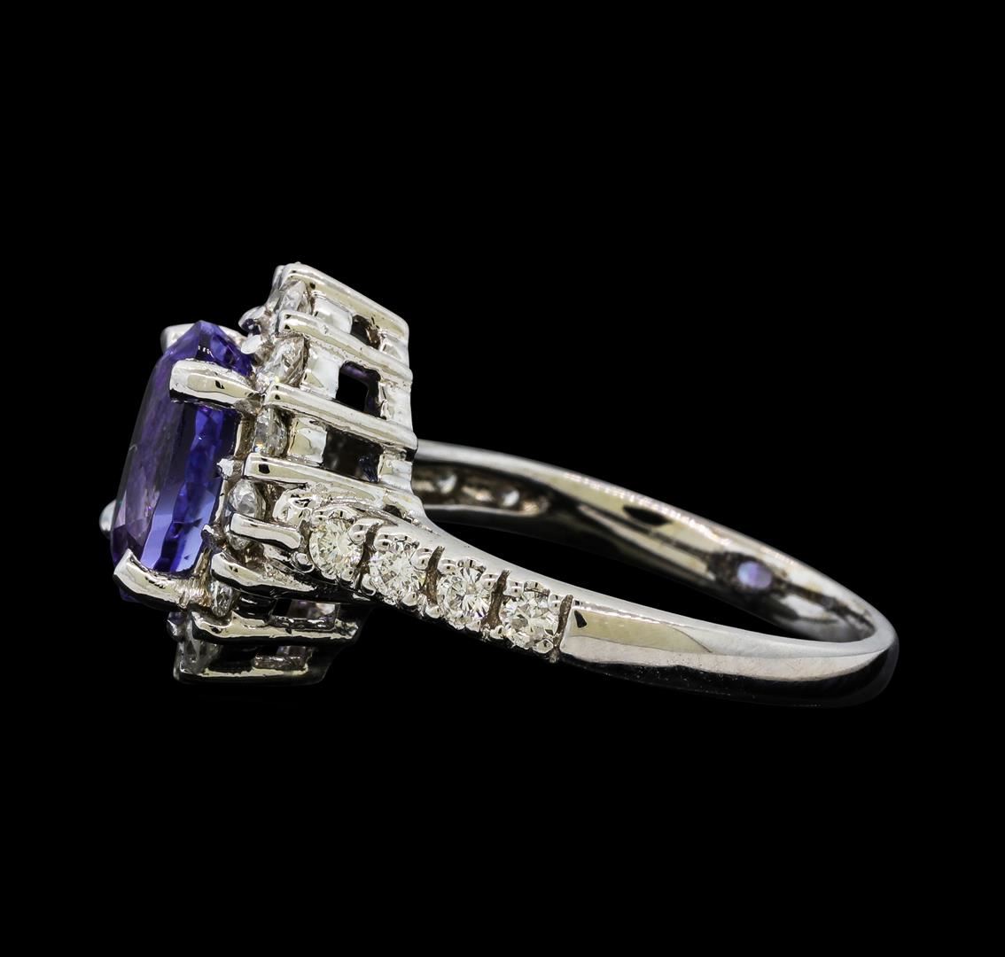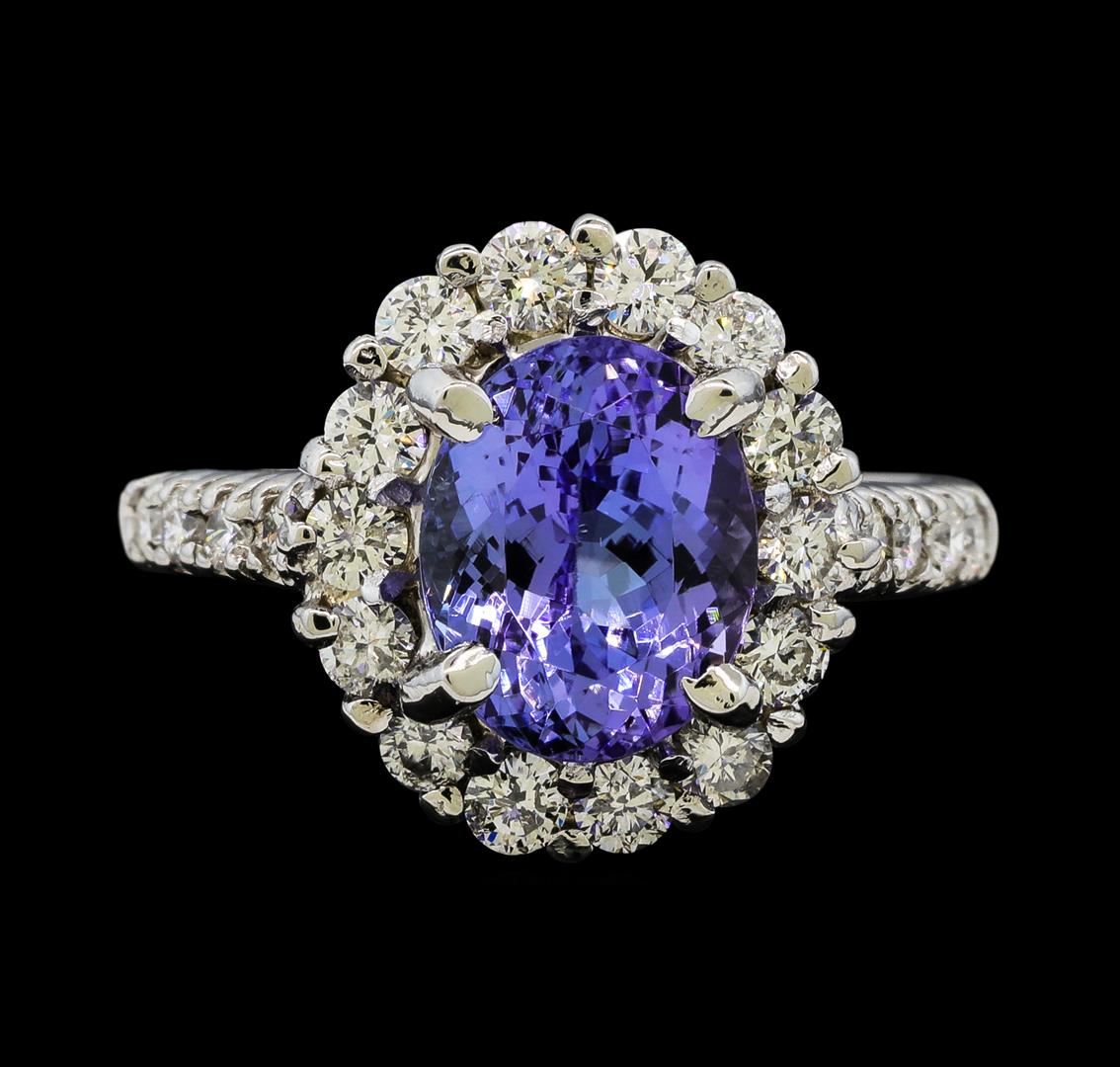 One Tanzanite and Diamond Ring including: 14KT White Gold weighing a total of 3.60 grams, Tanzanite weighing a total of 1.80ct, and 32 Diamonds weighing a total of 0.43ctw.