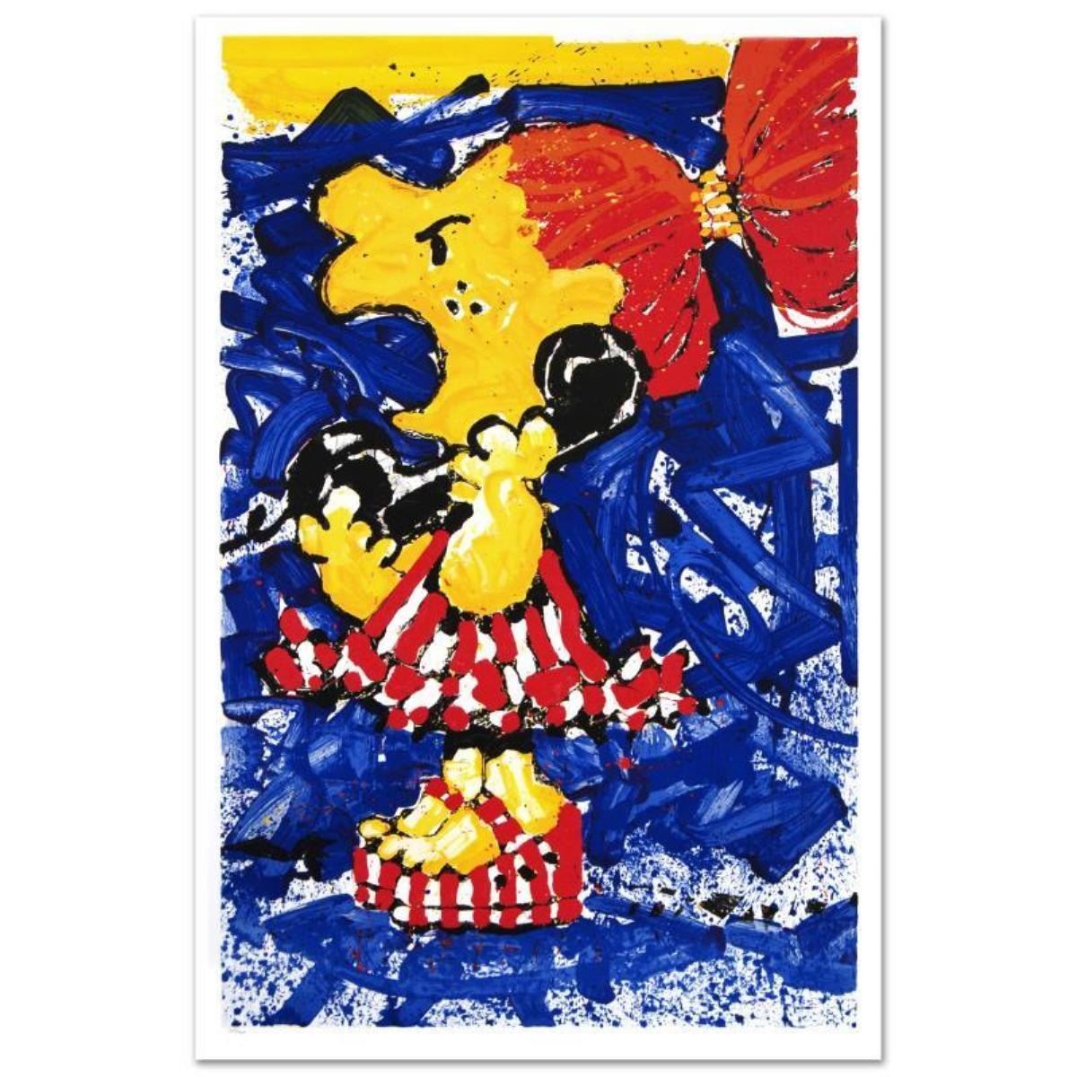 "1-800 My Hair is Pulled too Tight" is a limited edition hand pulled original lithograph on museum quality paper, numbered and hand signed by Tom Everhart. This is one of the final Everhart editions to be created on a rare, antique Marinoni Voirin lithograph press that dates back to the 1800's. Includes Certificate of Authenticity. Measures approx. 27.5" x 42.5" (with border); 25" x 40" (image).
