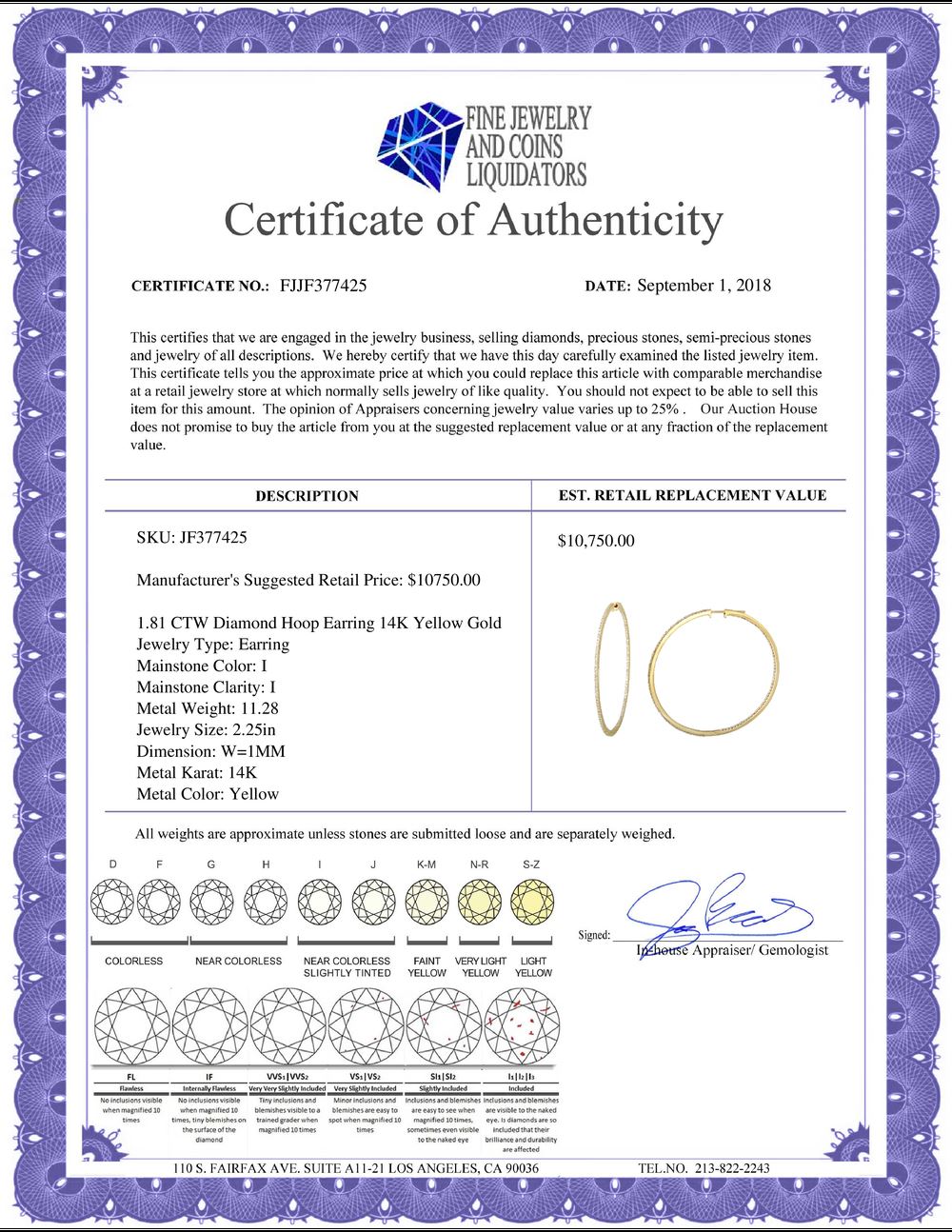 REF-140Y7X - JF377425 ---- 1.81 CTW White Round Diamond Earring 14K Yellow Gold
