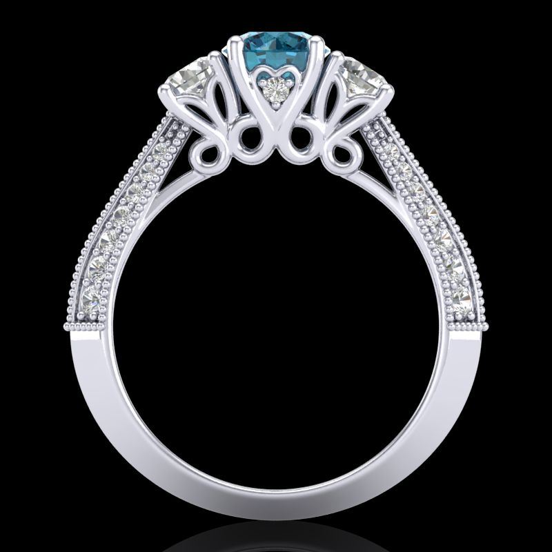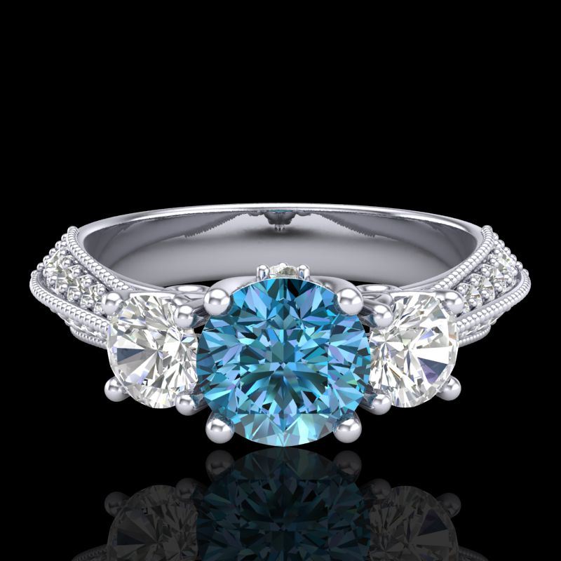 REF-236A4X -38027 ---- 1.81 CTW Intense Blue Diamond Solitaire Art Deco 3 Stone Ring 18K White Gold ---- Luxury Designer Brand 3 stone ring Appraised at $15,600 Certificate Number US38027 18k White gold, 3 stone ring Size is 7, 3 stone ring measuring approx. Uniform, weighing in total approx. 11 grams. Made in the USA and is stamped 18k, Main stone 0.77 carat total weight containing 1 pieces of Intense Fancy Blue color with SI quality Round shape cut Diamond , Stone #2 0.54 carat total weight containing 2 pieces of H-I color with VS/SI quality Round shape cut Diamond , Stone #3 0.5 carat total weight containing 31 pieces of G-H color with VS/SI quality Round shape cut Diamond