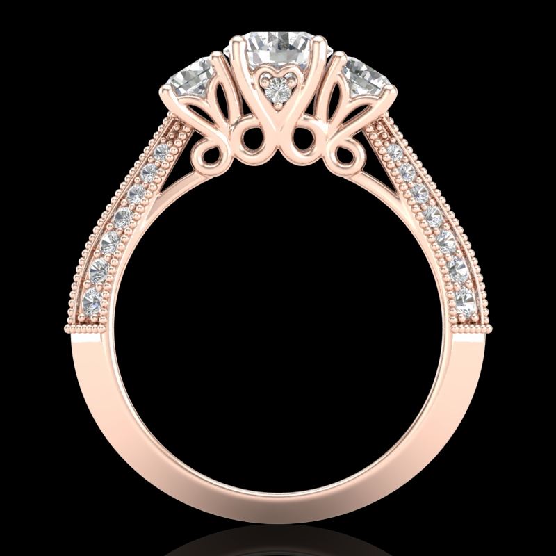 REF-262X5T -37146 ---- 1.81 CTW VS/SI Diamond Art Deco 3 Stone Ring 18K Rose Gold ---- Luxury Designer Brand 3 stone ring Appraised at $17,500 Certificate Number US37146 18k Rose gold, 3 stone ring Size is 7, 3 stone ring measuring approx. Uniform, weighing in total approx. 11 grams. Made in the USA and is stamped 18k, Main stone 0.77 carat total weight containing 1 pieces of H-J color with VS/SI quality Round shape cut Diamond , Stone #2 0.54 carat total weight containing 2 pieces of H-I color with VS/SI quality Round shape cut Diamond , Stone #3 0.5 carat total weight containing 31 pieces of G-H color with VS/SI quality Round shape cut Diamond