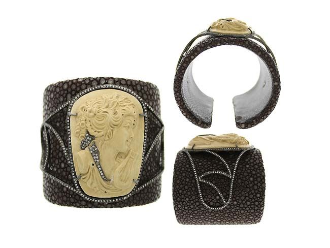 CAMEO AND DIAMOND STINGRAY BANGLE/Diamond Count 1:/Diamond Count 1 TCW:1.81/Diamond Color & Clarity:J-L/I1-I2/Diamond Count 2:/Diamond Count 2 TCW:/Diamond Color & Clarity:/Diamond Count 3:/Diamond Count 3 TCW:/Gemstone Count 1:/Gemstone Count 1 TCW:/Dimension:/Metal Type:0.925 SilverSterling Silver /Weight Gram:13.95/Weight Gram:/Gross Weight:92.34