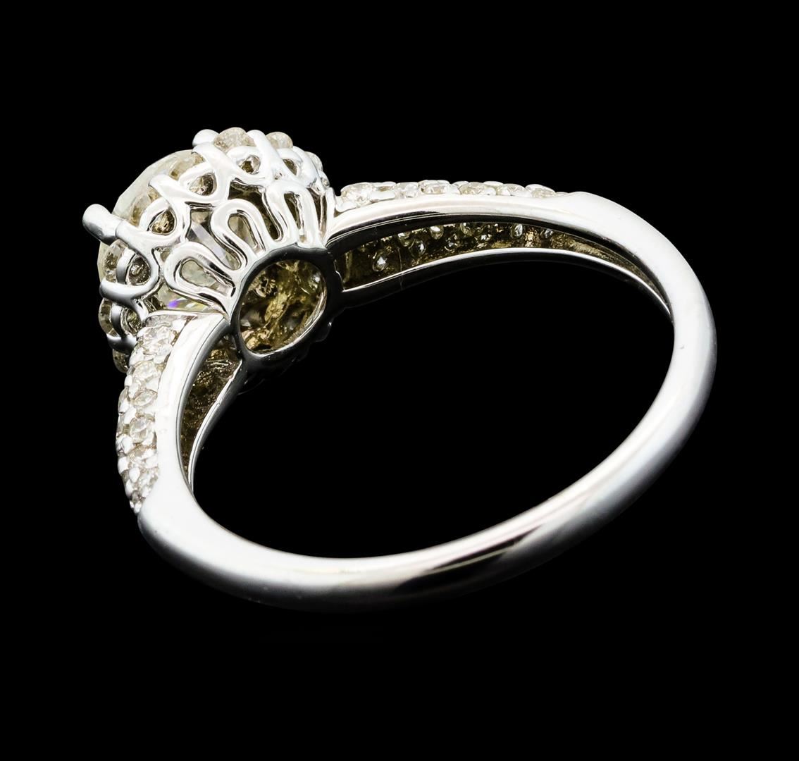 One electronically tested 14KT white gold lady's cast wedding ring with a scalloped basket halo with a bright polish finish. The featured lady's ring has a shank measuring 1.90 millimeters wide. Identified with markings of '14K'. Condition is new, good workmanship. Containing: One prong set round brilliant cut diamond, measuring 6.71 - 6.65 x 4.06mm (depth est.) , 10.00.%. GTCF approximate weight of 1.22ct. Graded in the setting. Clarity I-1. Color: J - K Cut Good Fourteen prong set round brilliant cut diamonds, measuring 1.60 - 1.50 x 0.96mm (depth est.) approximate total weight of 14 Stones = 0.20ct. Graded in the setting. Clarity SI-1 to SI-2. Color: H - I Cut Very Good Fifty prong set round brilliant cut diamonds, measuring 1.30 - 1.20 x 0.78mm (depth est.) approximate total weight of 50 Stones = 0.39ct. Graded in the setting. Clarity SI-1 to SI-2. Color: H - I Cut Good. Total Weight of Diamonds 1.81ct.. Total Weight of Ring 3.30gm. GAS Appraised at $11,180.00.