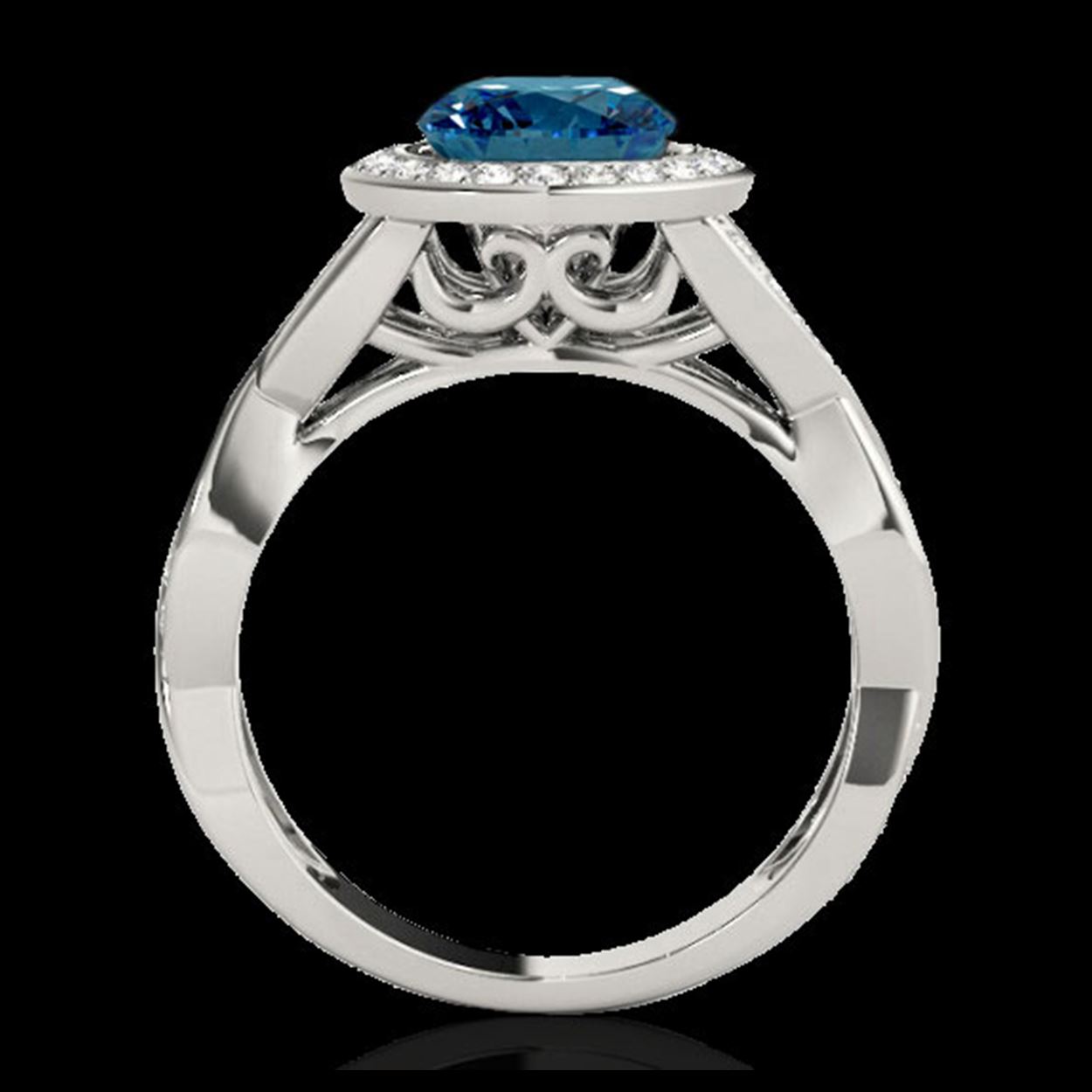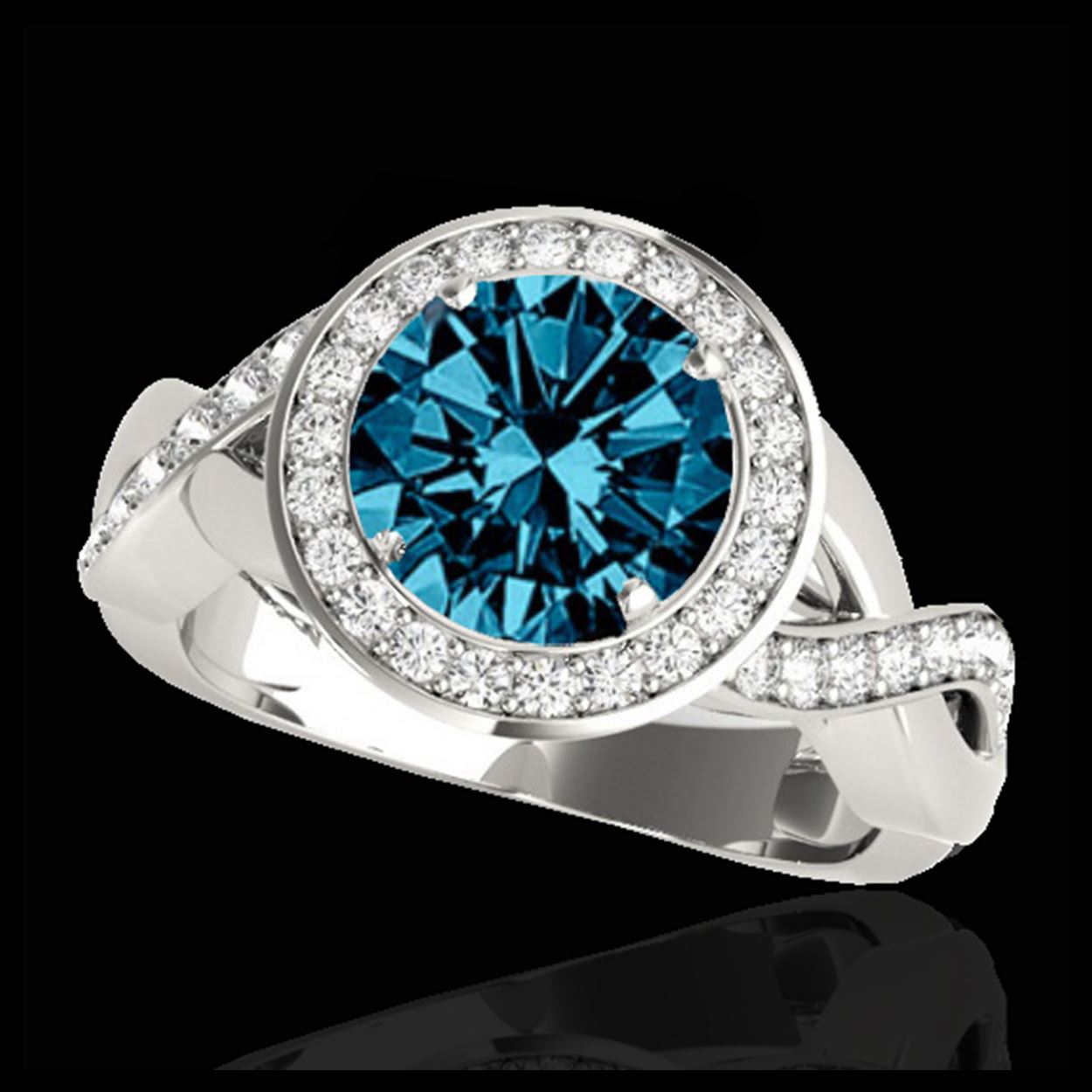 1.81 ctw Intense Blue Diamond Art Deco 3 Stone Ring 18K White Gold