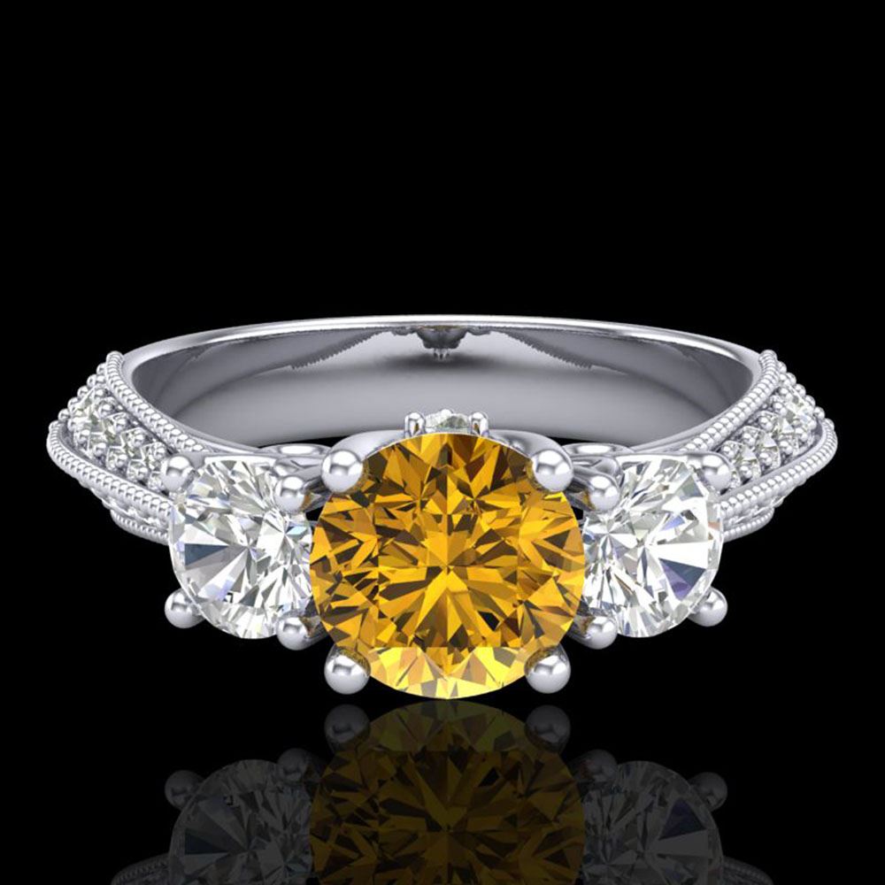 REF-236N4F - SKU: 38029 ---- 1.81 ctw Intense Fancy Yellow Diamond Art Deco Ring 18k White Gold