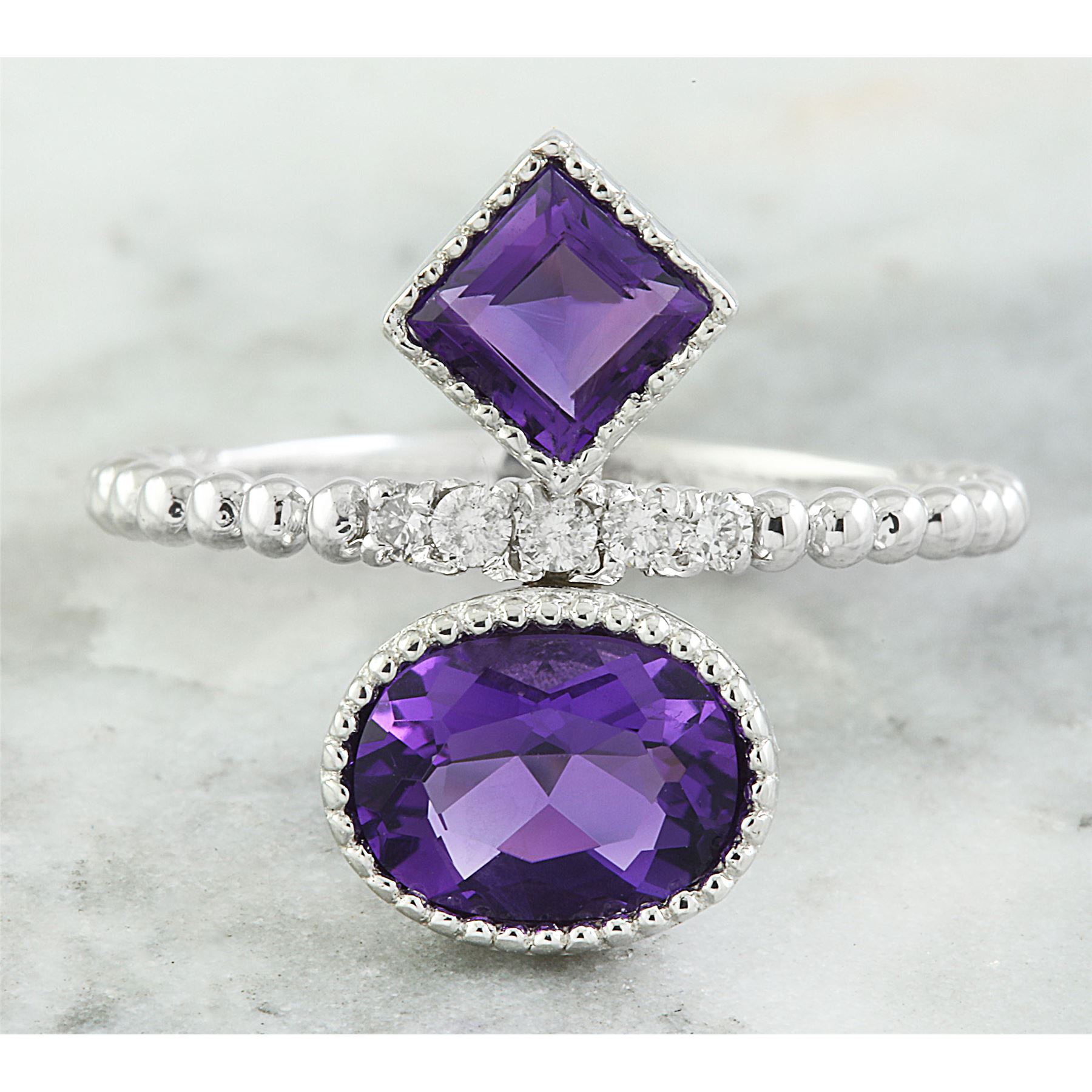 1.82 CTW Amethyst 14K White Gold Diamond Ring