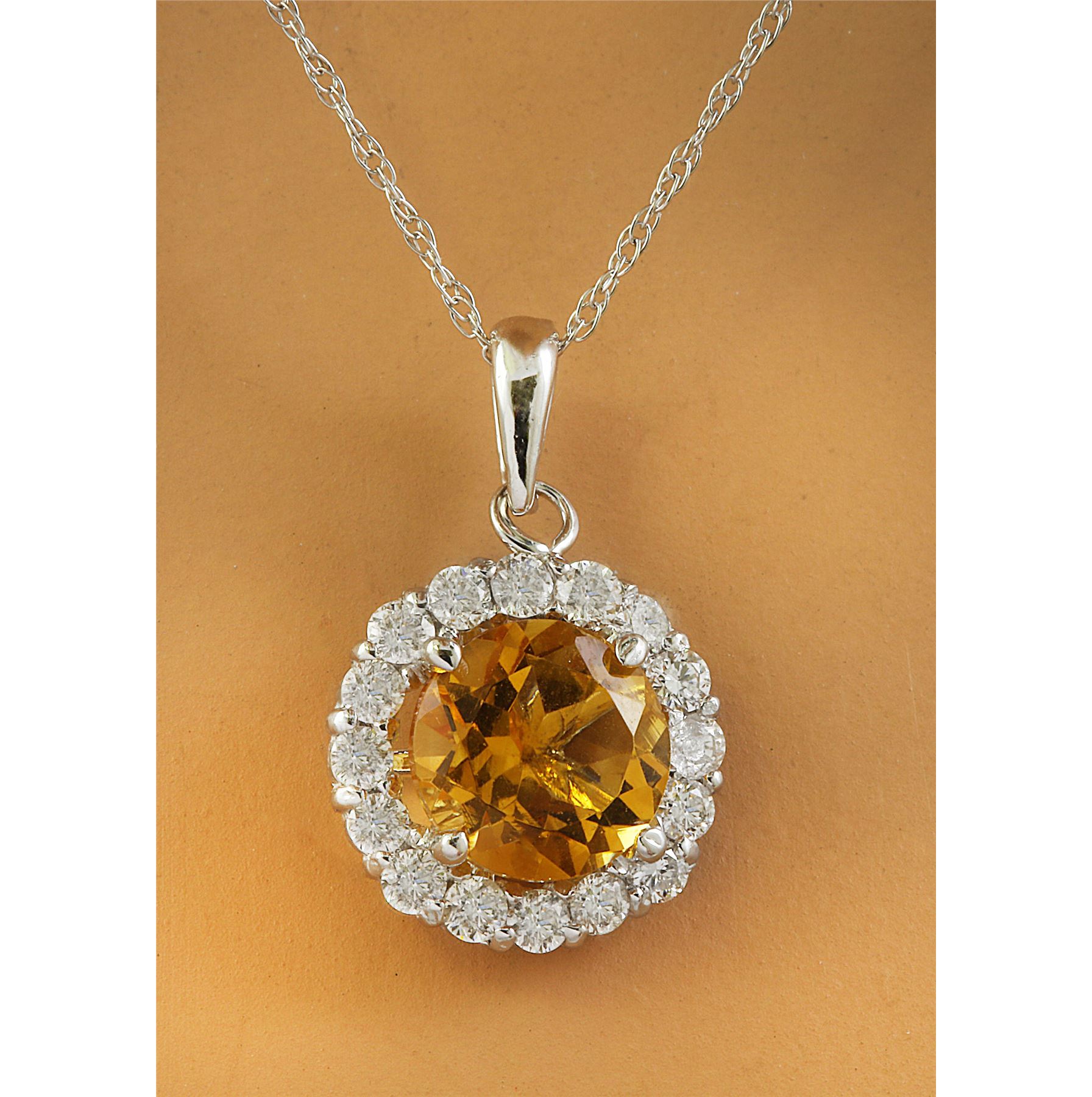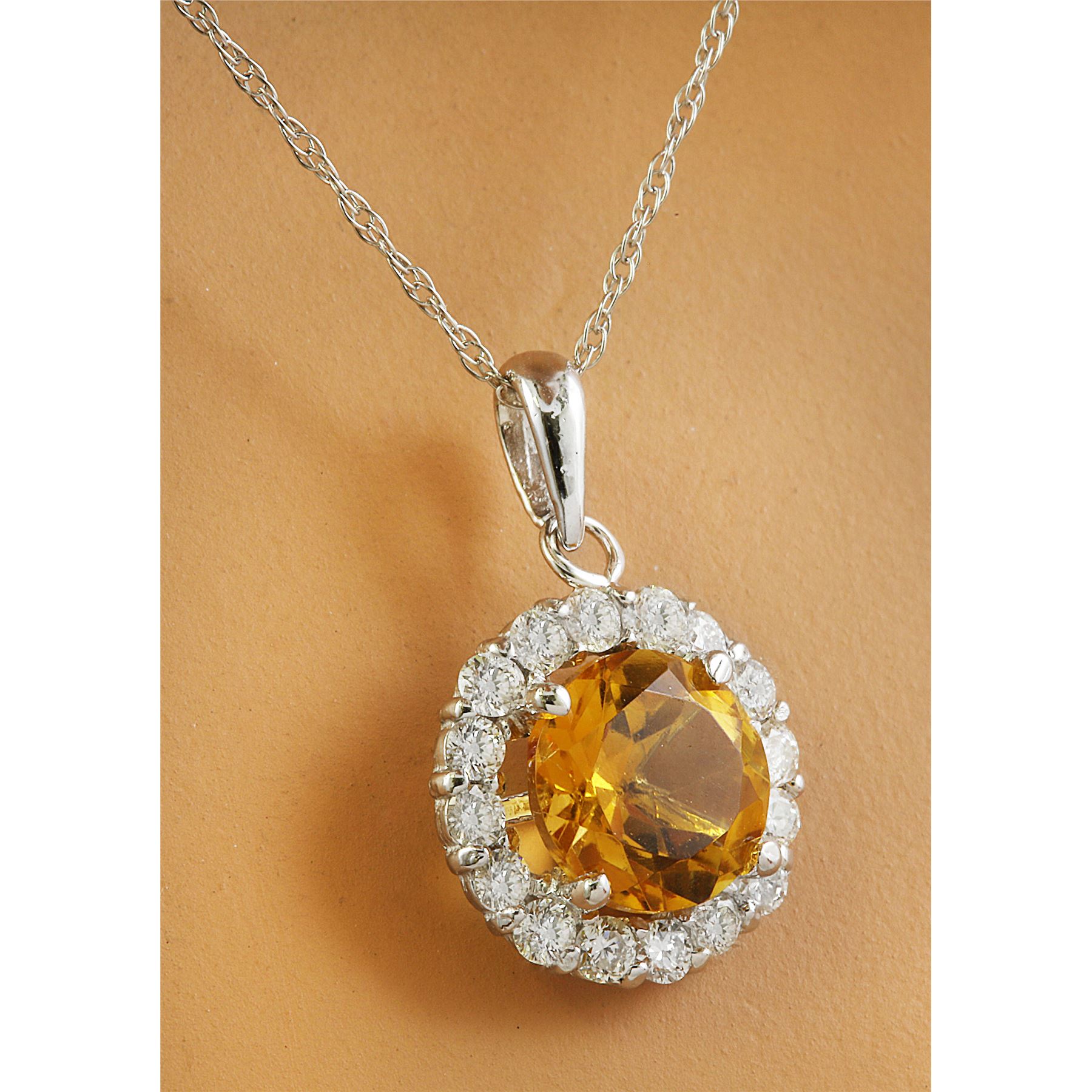 1.82 CTW Citrine 14K White Gold Diamond Necklace