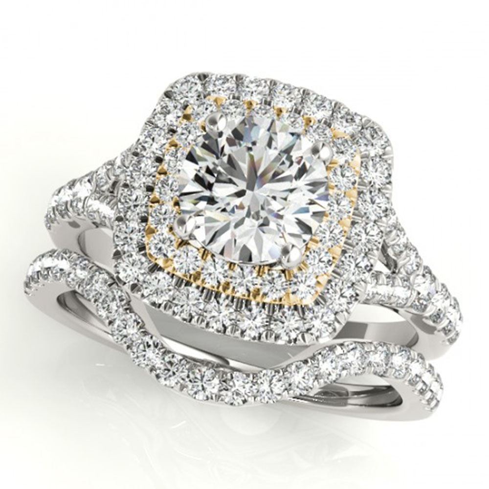 SKU: 30704 ---- 1.82 ctw Certified VS/SI Diamond 2pc Set Solitaire Halo 14k White & Yellow Gold
