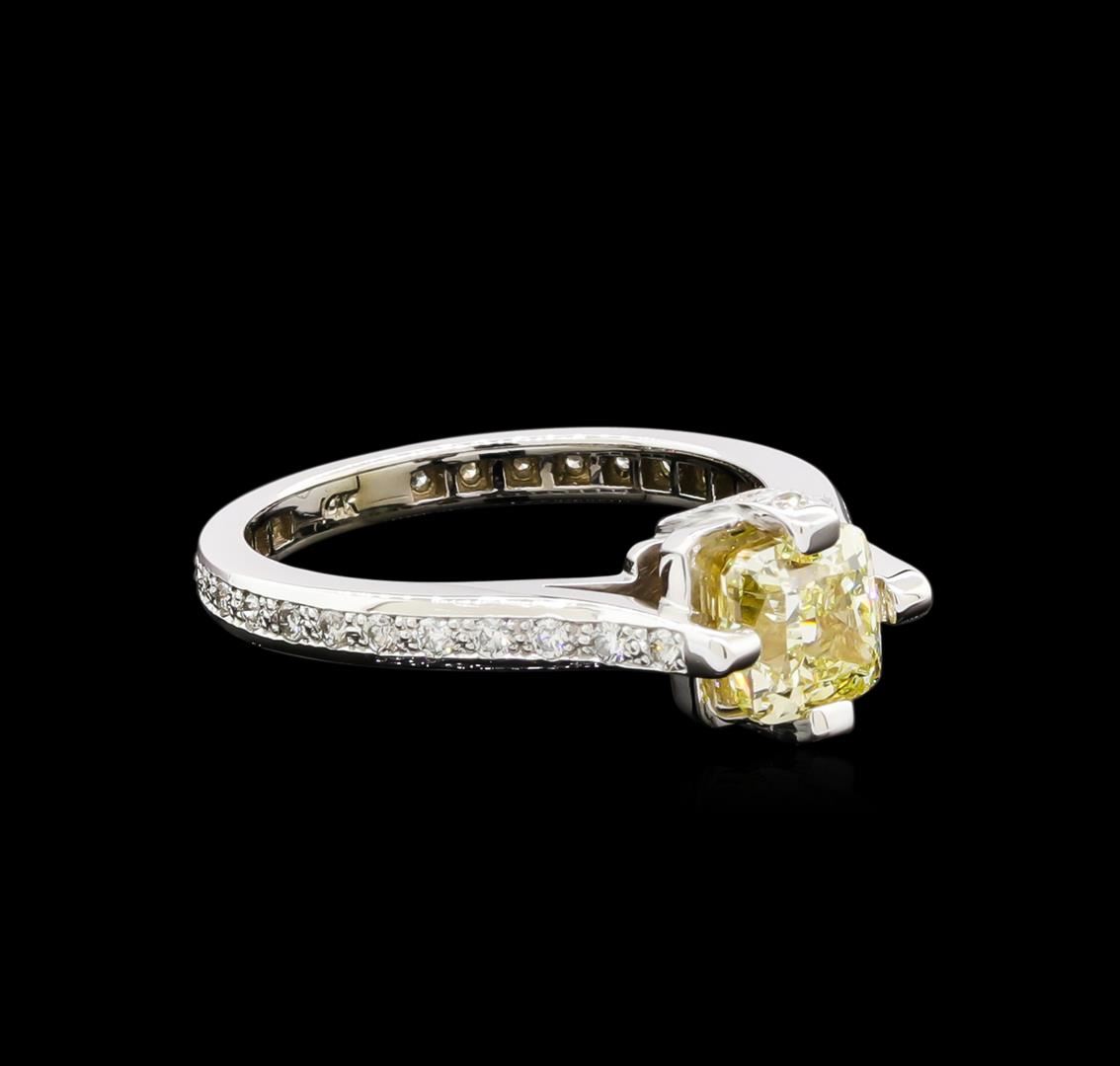 One electronically tested 14KT white gold lady's combination cast & assembled wedding ring with a cathedral shank with a bright polish finish. The featured lady's ring has a shank measuring 2.38 millimeters wide. Identified with markings of "14K". Condition is new, good workmanship. Containing: One prong set cushion cut diamond, measuring 5.90 x 5.78 x 4.79mm (depth est.) , 10.00.%. GTCF approximate weight of 1.50ct. Graded in the setting. Clarity: VS-2 Cut Good Thirty-Eight prong set round brilliant cut diamonds, measuring 1.30 - 1.25 x 0.82mm (depth est.) approximate total weight of 38 Stones = 0.32ct. Graded in the setting. Clarity: SI-1 to I-1. Color: G - H. Cut Good. Total Weight of Diamonds 1.82ct. Total Weight of Ring 4.30gm. GAS Appraised at $20,085.00.