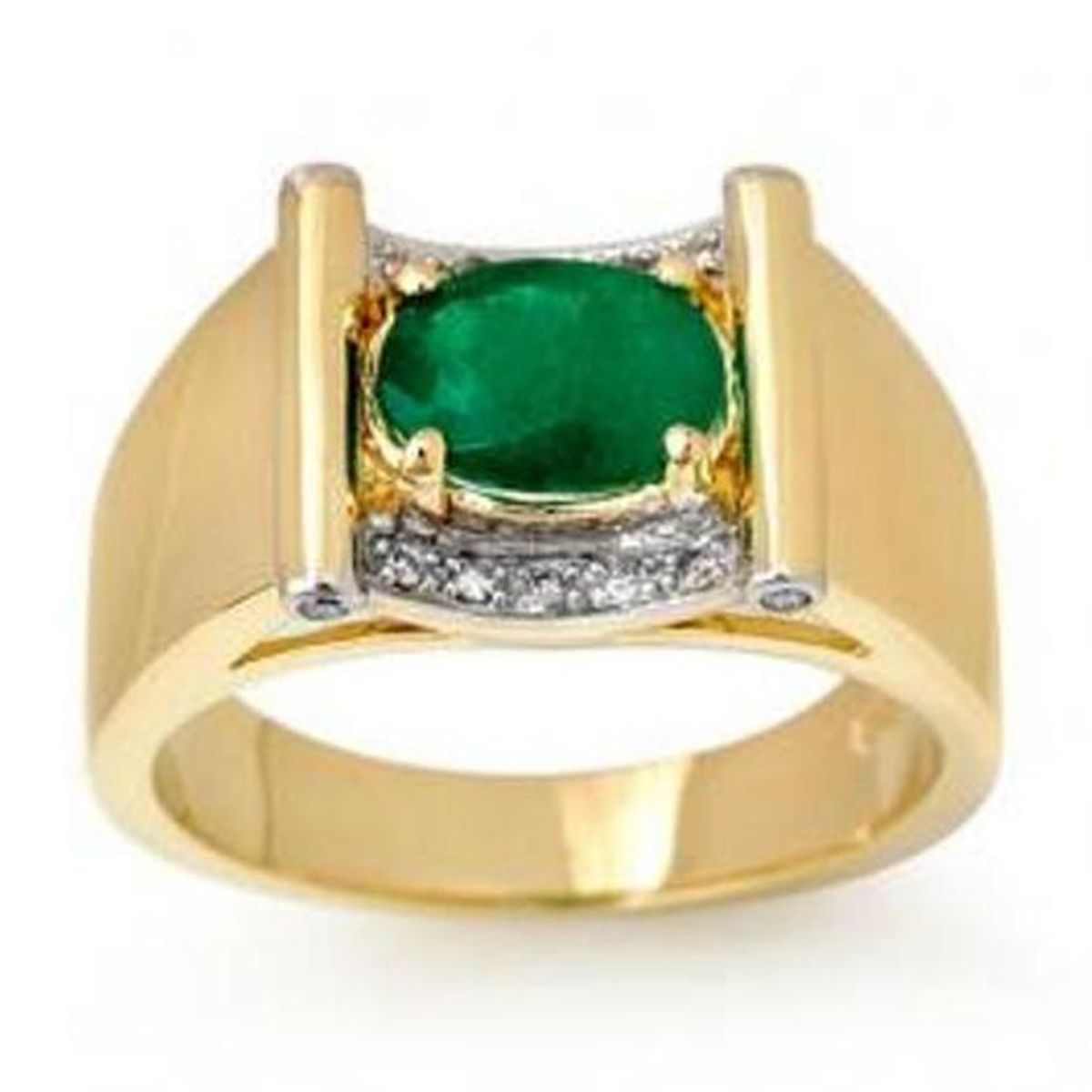 Diamond: 10 Round cut @ 0.08 ctw Clarity: SI-I Color: H-K Gemstone: Natural Emerald Gemstone color: GreenGemstone quality: Good-to-Very Good Gemstone Cut & Weight: 1 Oval cut @ 1.75 ctw Metal Purity & Color : 10K Gold-Yellow Gold weight: 8.50 grams