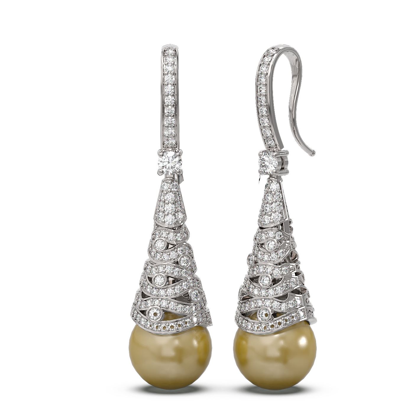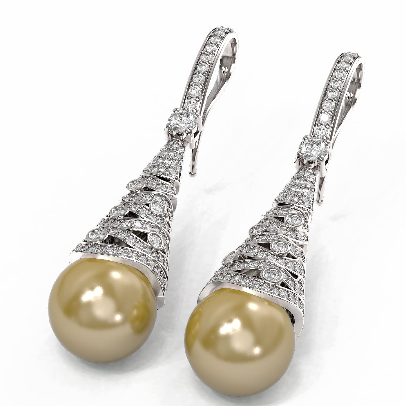 SKU: 61217 ---- 1.84 ctw Diamond & Pearl Earrings 18K White Gold