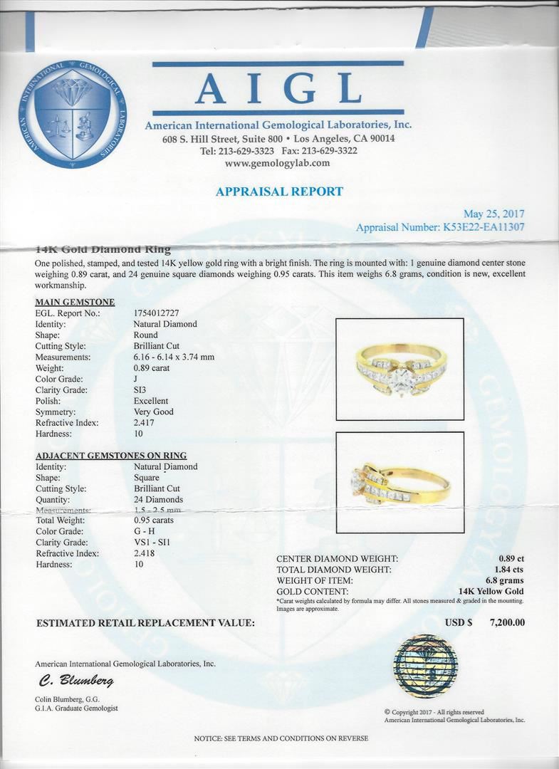 One 1.84ctw Diamond Ring - 14KT Yellow Gold . AIG certified. See Appraisal for more details. AIG Appraised.