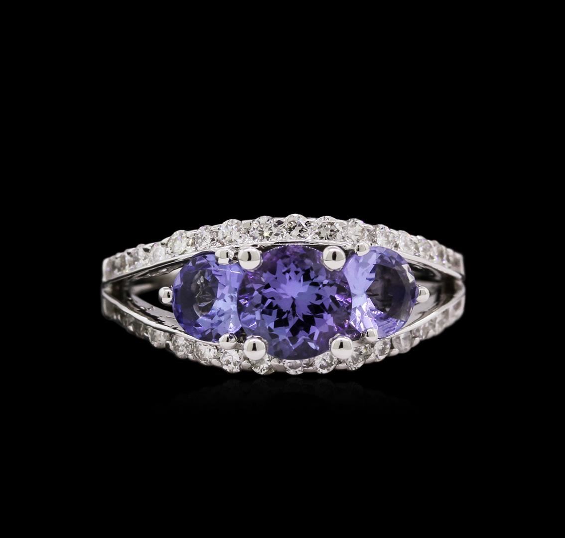 One ring featuring: 14KT white gold weighing 5.35 grams containing 3 tanzanite with a total weight of 1.88ct and diamonds with a total weight of 0.69ct.