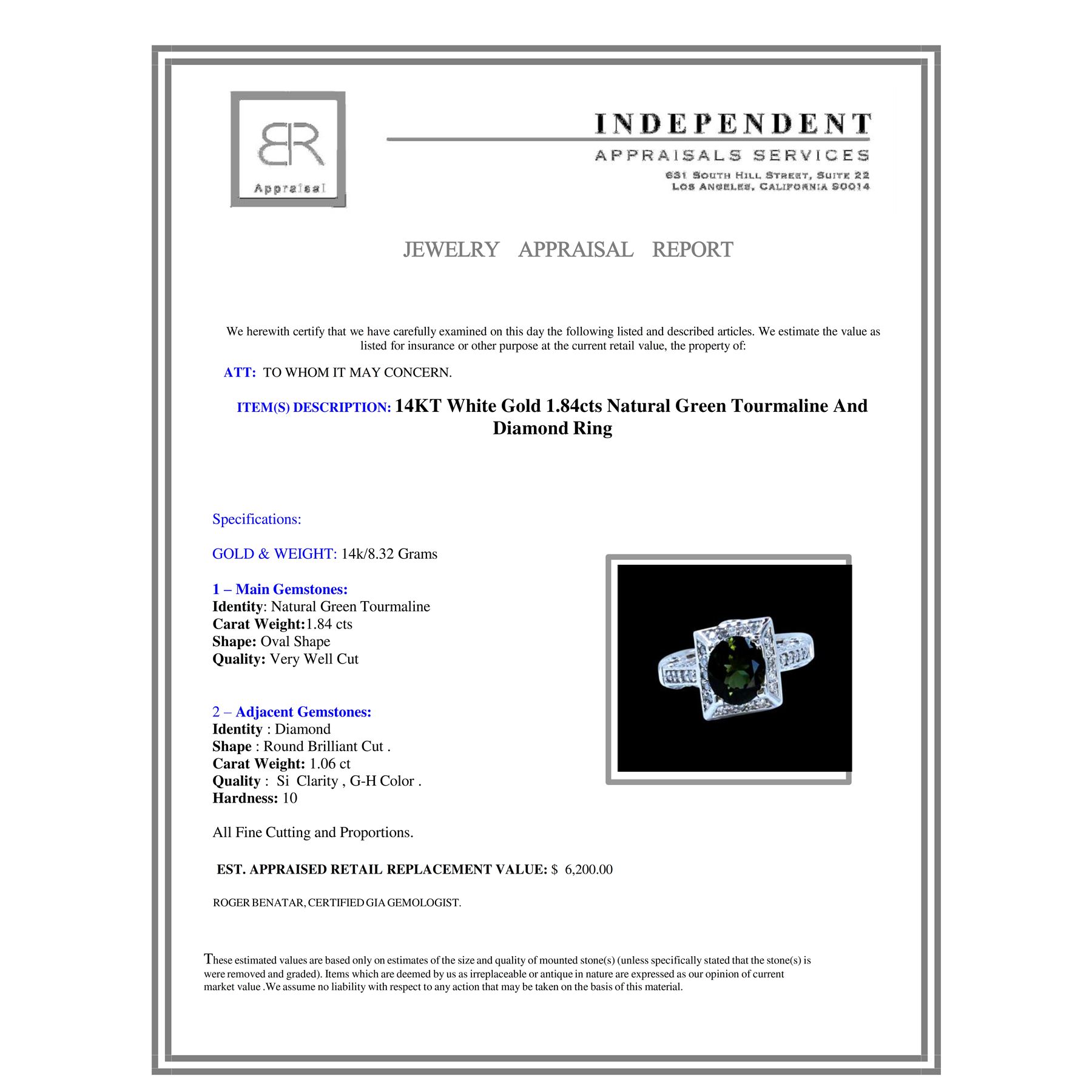 14K W/G NATURAL TOURMALINE RING :8.32GRAM /GREEN TOURMALINE :1.84CT/DIA: 1.06CT/#GVR1329