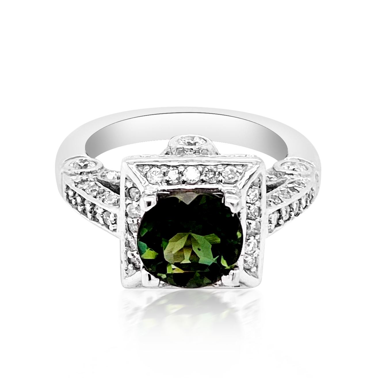 14K W/G NATURAL TOURMALINE RING :8.32GRAM /GREEN TOURMALINE :1.84CT/DIA: 1.06CT/#GVR1329