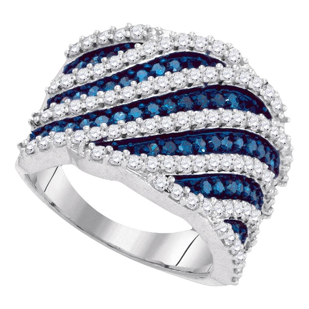 REF-98M9H- SKU: GD87155 ---- 1.85 CTW Blue Color Diamond Diagonal Fashion Ring 10KT White Gold