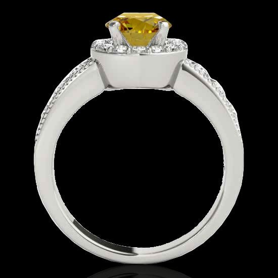 REF-207F3N -34538 ---- 1.85 CTW Certified Si/I Fancy Intense Yellow Diamond Solitaire Halo Ring 10K White Gold ---- Luxury Designer Brand Ring Appraised at $13,700 Certificate Number US34538 10k White gold, Ring Size is 7, Ring measuring approx. Uniform, weighing in total approx. 5 grams. Made in the USA and is stamped 10k, Main stone 1 carat total weight containing 1 pieces of Intense Fancy Yellow color with SI quality Round shape cut Diamond , Stone #2 0.85 carat total weight containing 20 pieces of H-I color with VS/SI quality Round shape cut Diamond