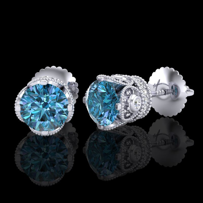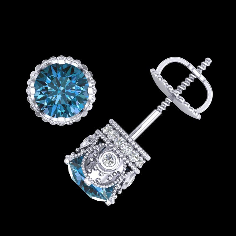 1.85 CTW Fancy Intense Blue Diamond Art Deco Stud Earrings 18K White Gold ---- Luxury Designer Brand Earring Appraised Retail Price at $10,450 ---- SKU Number US37411 18k White gold Earring Size is Larger, Earring measuring approx. Uniform, weighing in total approx. 5 grams. Made in the USA and is stamped 18k, Main stone 1.15 carat total weight containing 2 pieces of Intense Fancy Blue color with SI quality Round shape cut Diamond , Stone #2 0.7 carat total weight containing 76 pieces of H-I color with VS/SI quality Round shape cut
