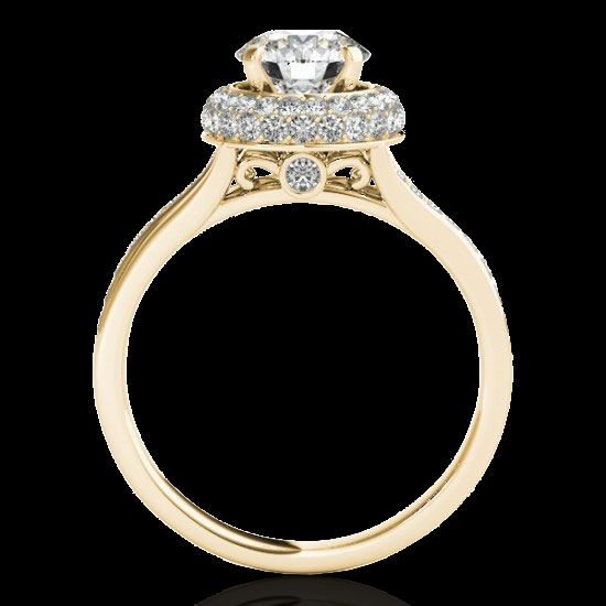 REF-218M2H -34125 ---- 1.85 CTW H-SI/I Certified Diamond Solitaire Halo Ring 10K Yellow Gold ---- Luxury Designer Brand Ring Appraised at $13,200 Certificate Number US34125 10k Yellow gold, Ring Size is 7, Ring measuring approx. Uniform, weighing in total approx. 3.5 grams. Made in the USA and is stamped 10k, Main stone 1.25 carat total weight containing 1 pieces of H-I color with SI/I quality Round shape cut Diamond , Stone #2 0.6 carat total weight containing 62 pieces of H-I color with VS/SI quality Round shape cut Diamond