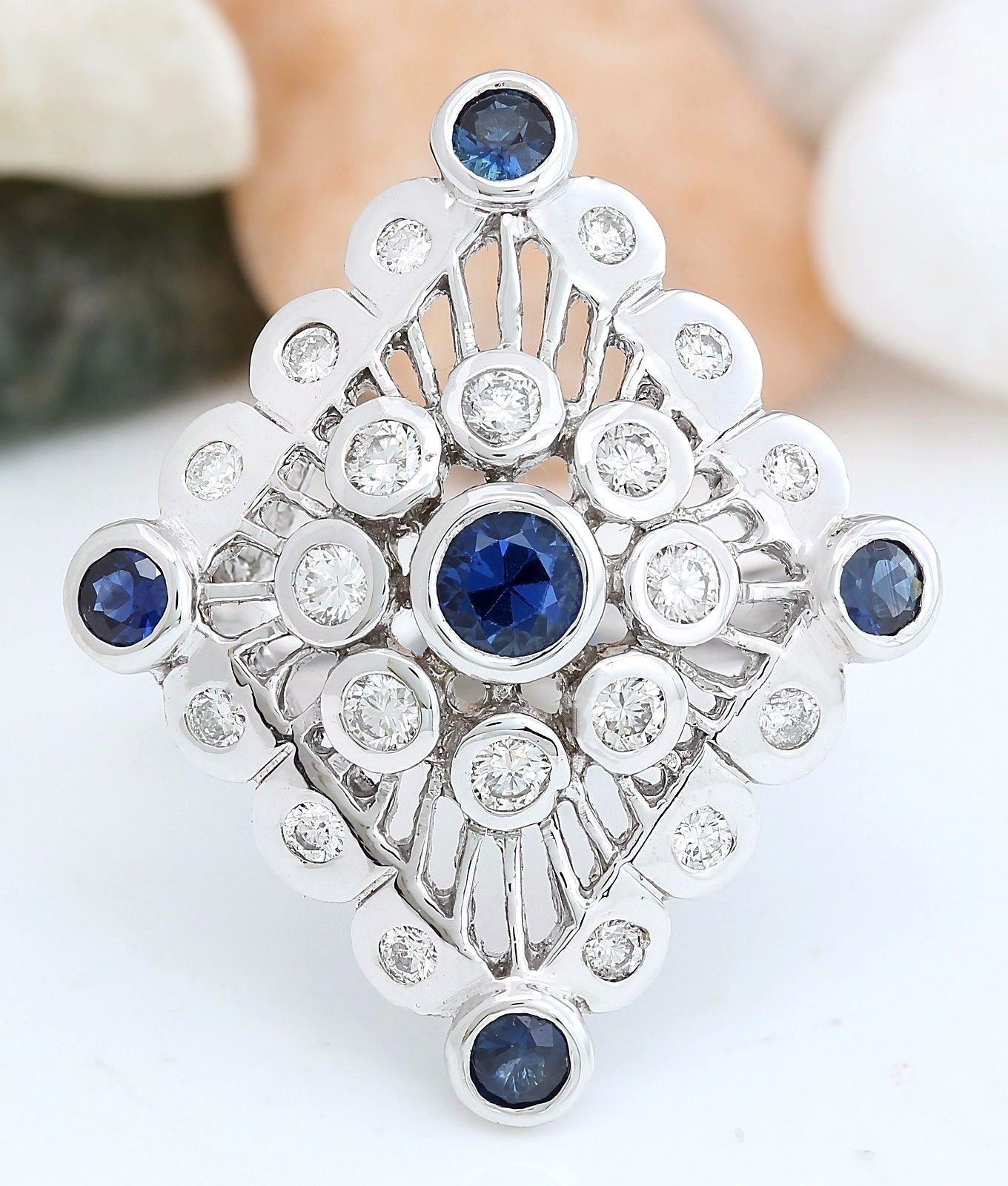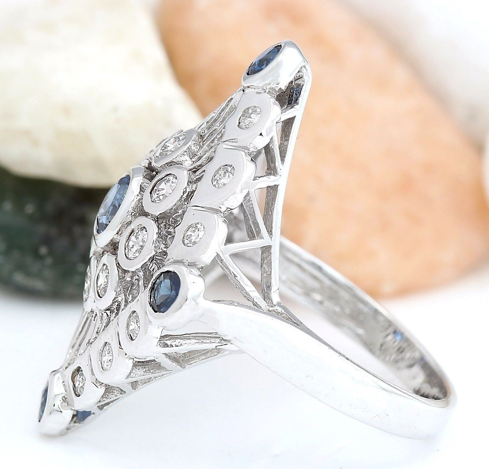 1.85 Carat Natural Sapphire 14K Solid White Gold Diamond Ring