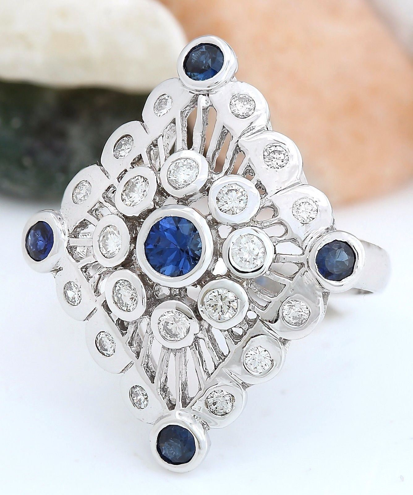 1.85 CTW Natural Sapphire 14K Solid White Gold Diamond Ring