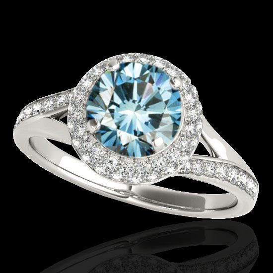 1.85 CTW SI Certified Fancy Blue Diamond Solitaire Halo Ring 10K White Gold ---- Luxury Designer Brand Ring Appraised Retail Price at $14,400 ---- SKU Number US34128 10k White gold Ring Size is 7, Ring measuring approx. Uniform, weighing in total approx. 4 grams. Made in the USA and is stamped 10k, Main stone 1.25 carat total weight containing 1 pieces of Intense Fancy Blue color with SI quality Round shape cut Diamond , Stone #2 0.6 carat total weight containing 62 pieces of H-I color with VS/SI quality Round shape cut