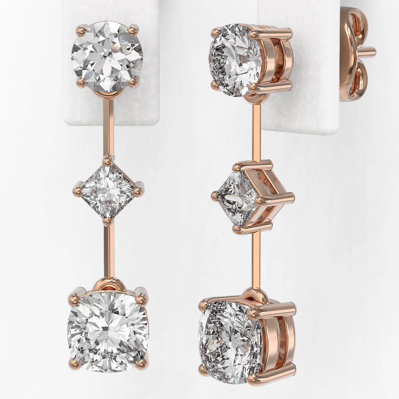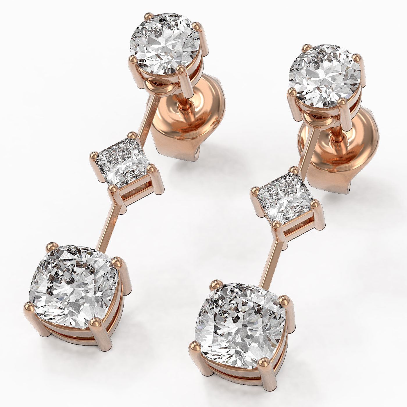 SKU: 48700 ---- 1.85 ctw Cushion Cut Diamond Designer Earrings 18K Rose Gold