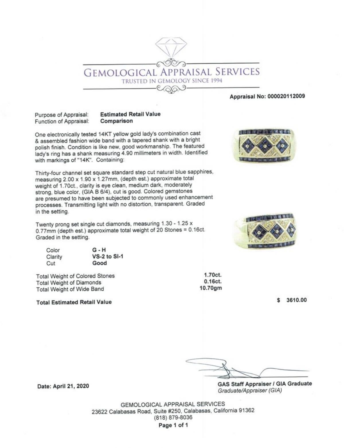 One electronically tested 14KT yellow gold lady's combination cast & assembled fashion wide band with a tapered shank with a bright polish finish. The featured lady's ring has a shank measuring 4.90 millimeters in width. Identified with markings of '14K'. GAS Appraised.
