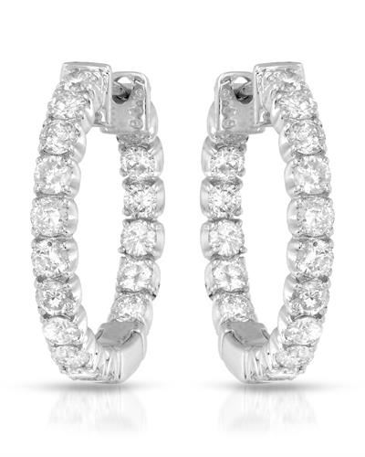 REF-181V8T - SKU: JF409082 ---- 1.87 CTW White Round Diamond Hoop Earring 14K White Gold
