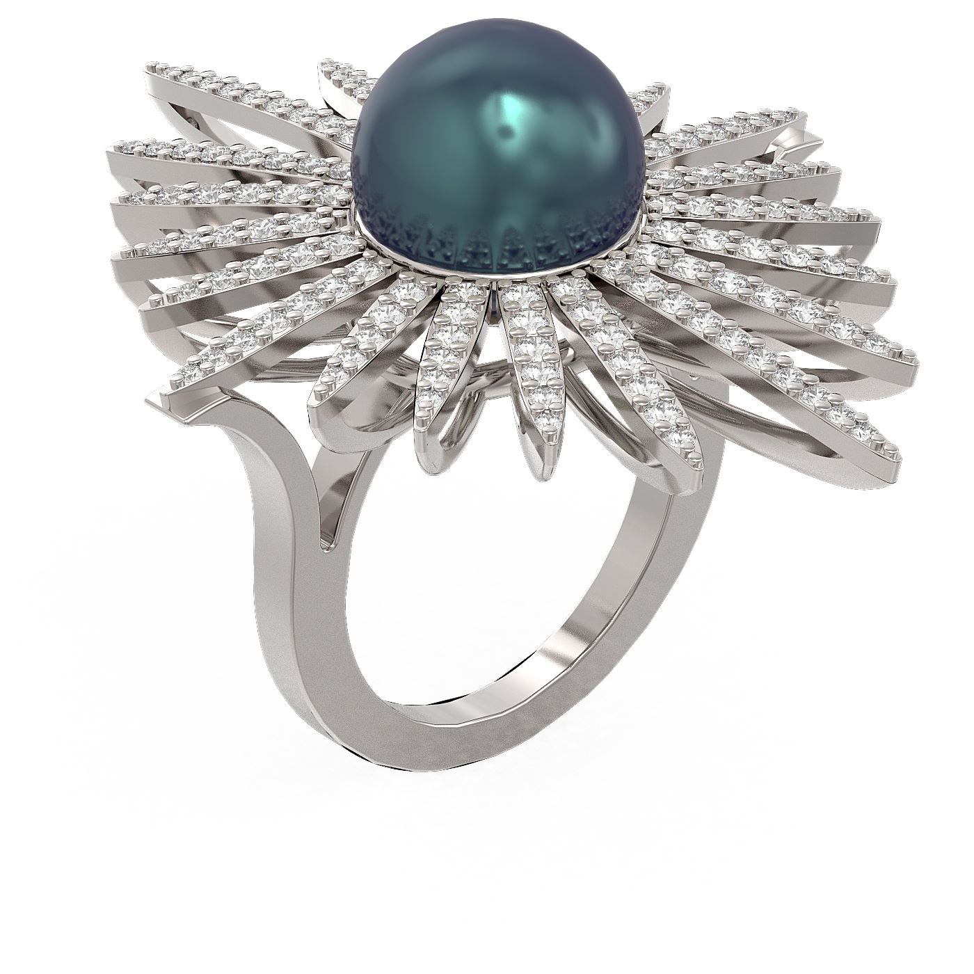 SKU: 57446 ---- 1.87 ctw Diamond & Pearl Ring 18K White Gold