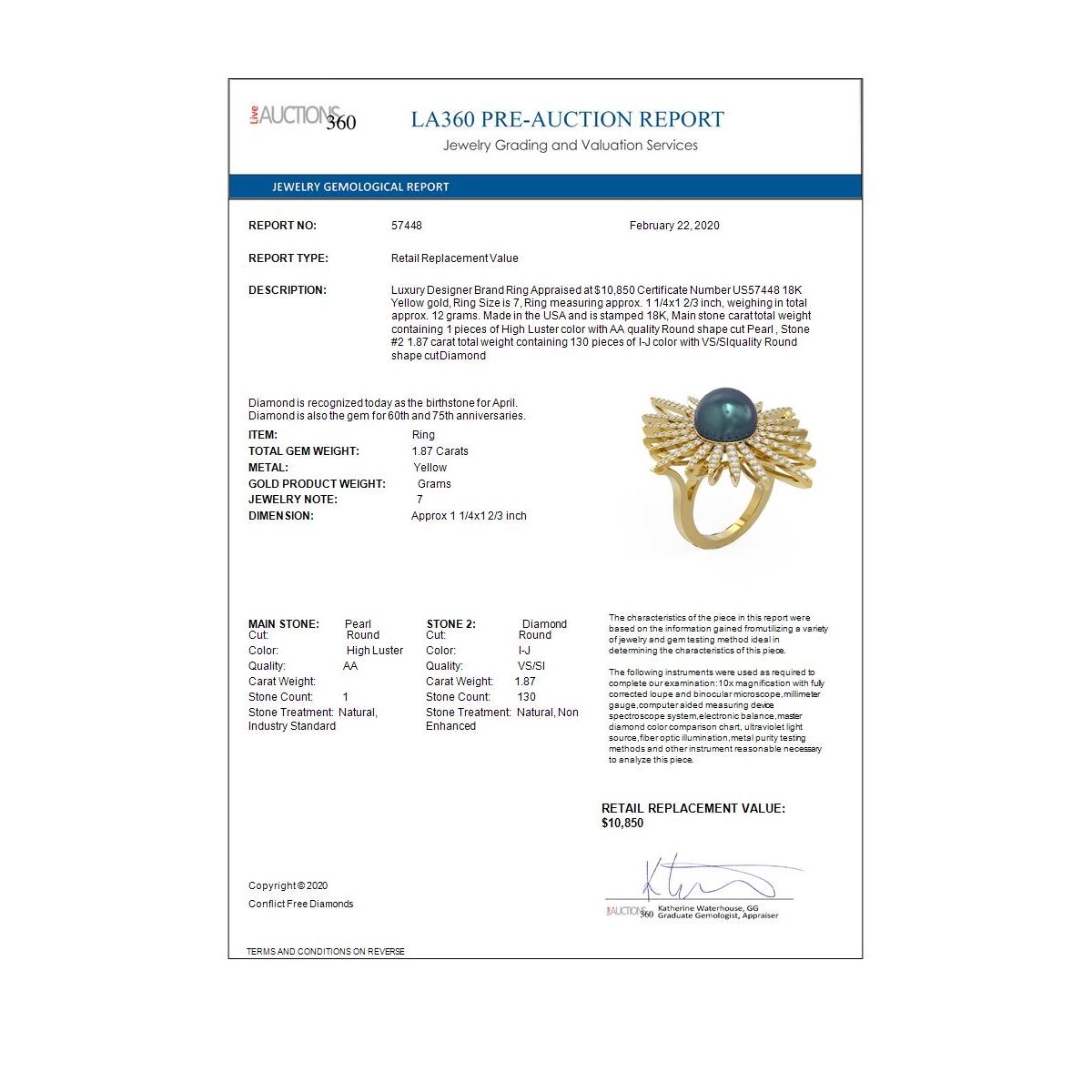 REF-219F3M - SKU: 57448 ---- 1.87 ctw Diamond & Pearl Ring 18K Yellow Gold