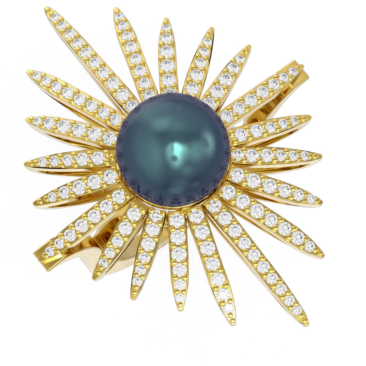 SKU: 57448 ---- 1.87 ctw Diamond & Pearl Ring 18K Yellow Gold