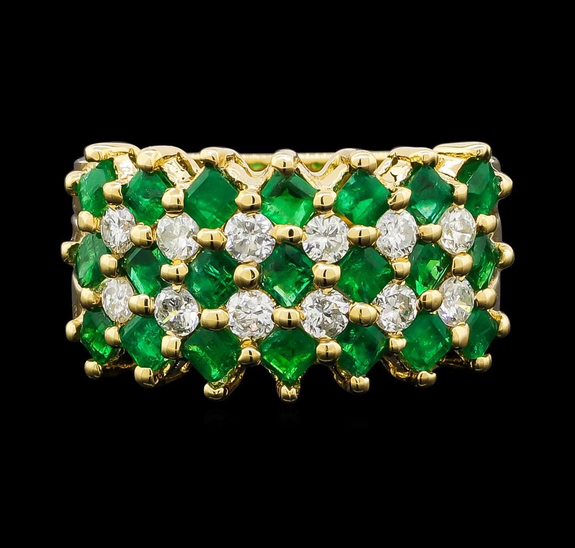 One ring featuring: 18KT Yellow Gold containing Emerald with a total weight of 1.87ct and Diamonds with a total weight of 0.59ct. Total Weight of Ring: 6.3 grams.