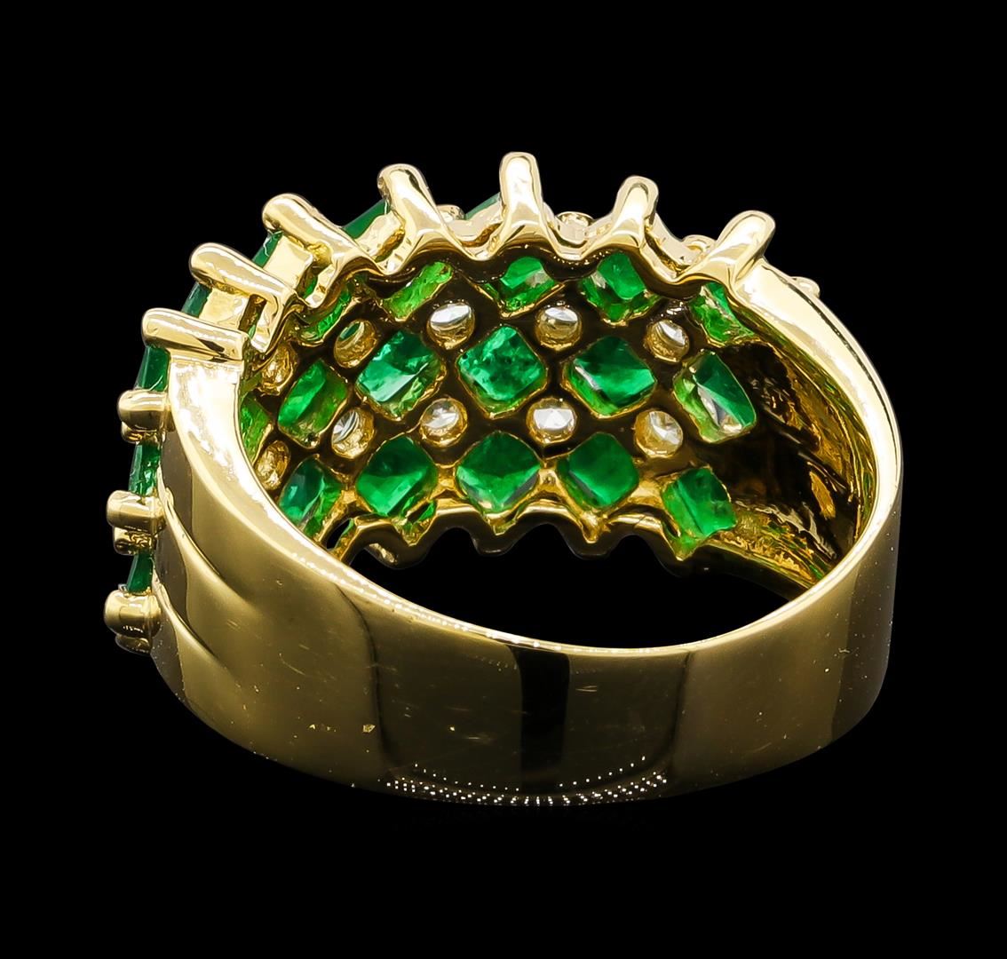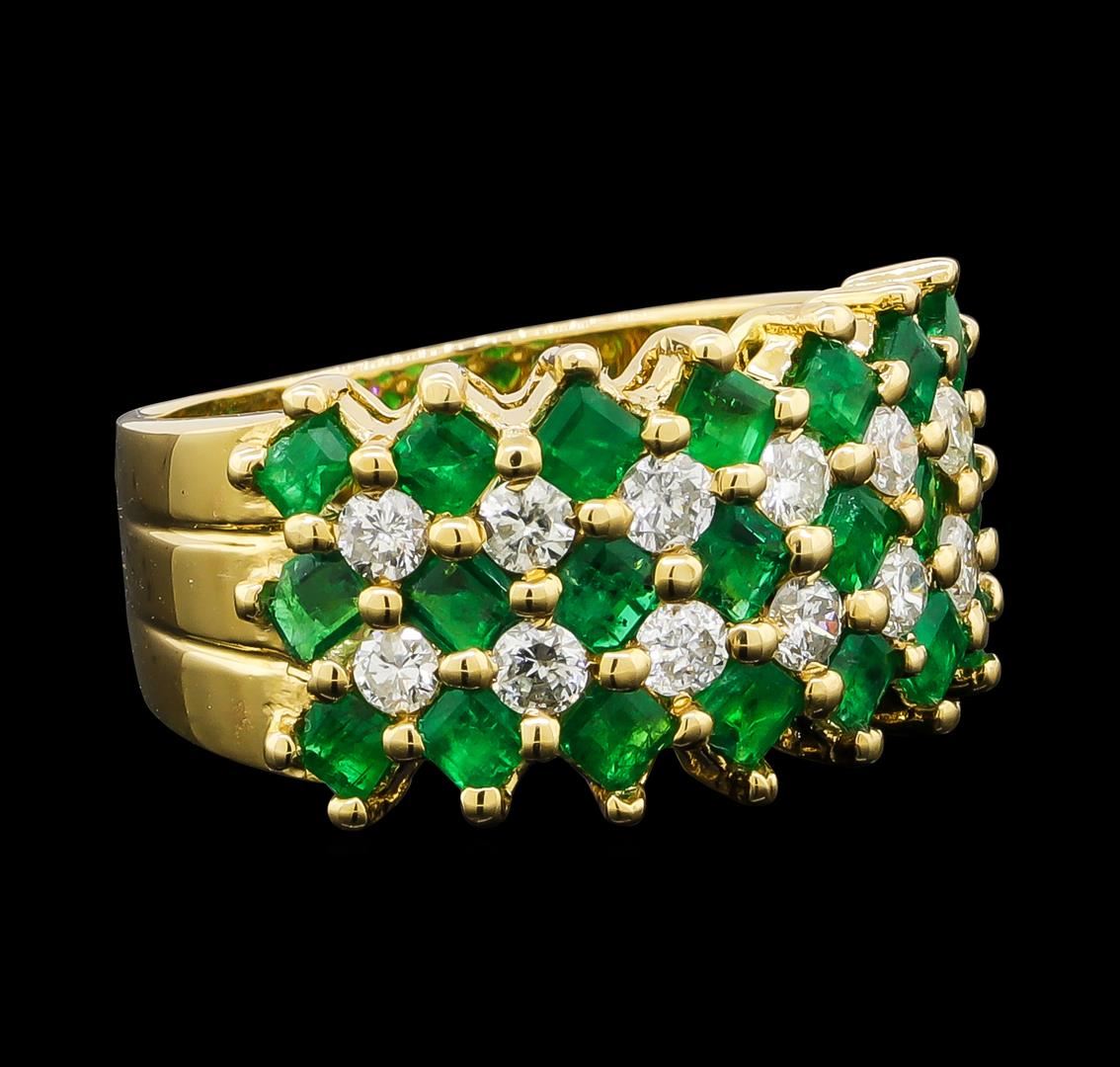 One ring featuring: 18KT Yellow Gold containing Emerald with a total weight of 1.87ct and Diamonds with a total weight of 0.59ct. Total Weight of Ring: 6.3 grams.