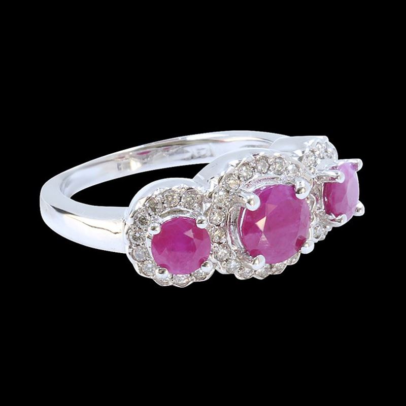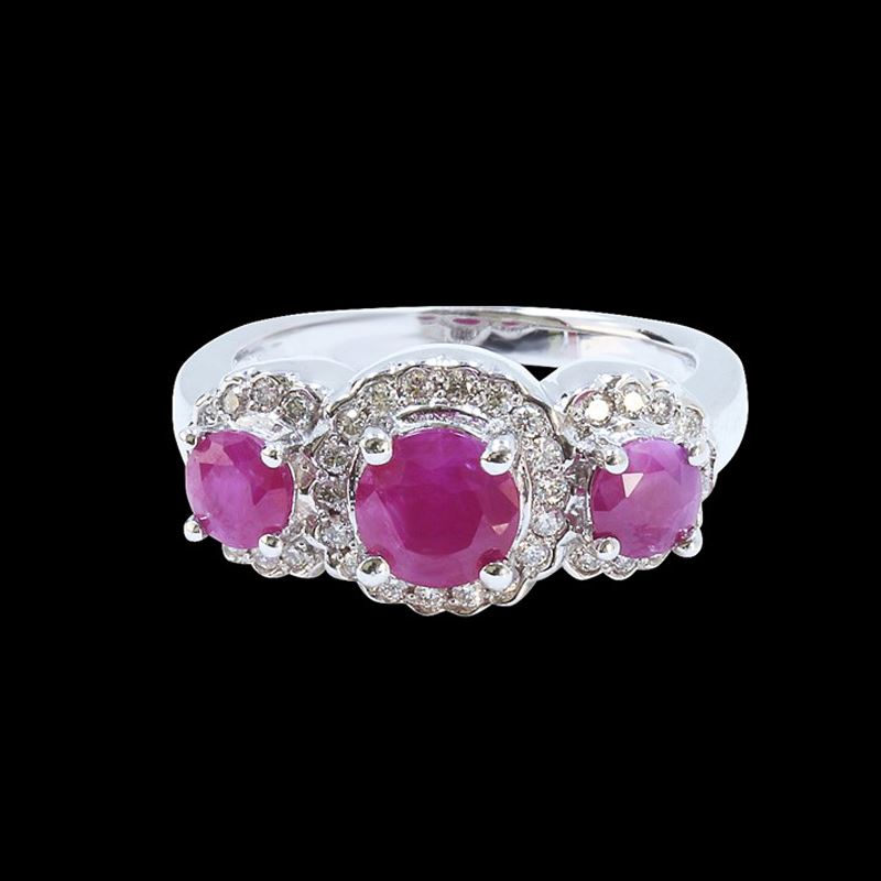 14K WHITE GOLD RUBY RING:5.20 GRAMS/DIAMOND:0.31CT/RUBY:1.87CT/#GVR1044/ NO LEAD OR GLASS FILLING