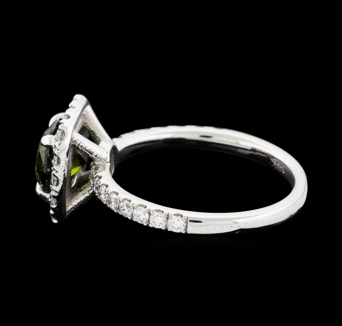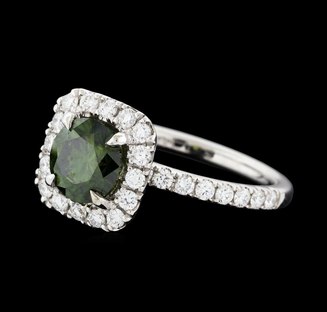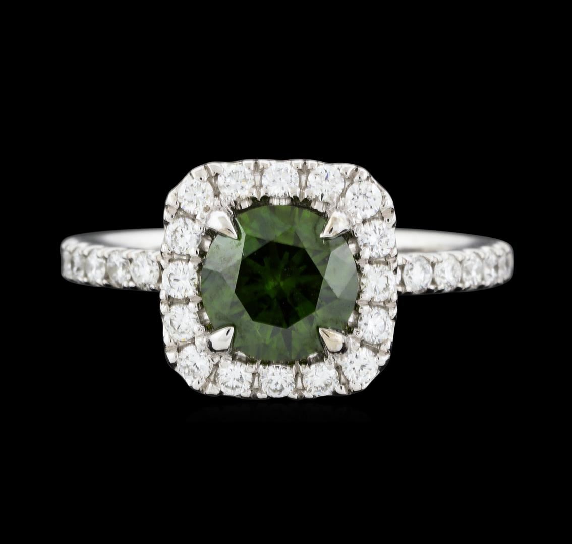 One electronically tested 14KT white gold lady's cast fashion ring with a cushion halo with a bright polish finish. The featured lady's ring has a shank measuring 1.87 millimeters wide. Identified with markings of '14K'. Condition is new, good workmanship. Containing: One prong set round brilliant cut diamond, measuring 6.90 - 6.88 x 4.34mm (depth est.) , 5.00.%. GTCF approximate weight of 1.32ct. Colored gemstones are presumed to have been subjected to commonly used enhancement processes. Graded in the setting. Clarity SI-1 Cut Very Good Thirty-Two prong set round brilliant cut diamonds, measuring 1.70 - 1.60 x 1.02mm (depth est.) approximate total weight of 32 Stones = 0.56ct. Graded in the setting. Clarity VS-2 to SI-1. Color: G - H Cut Very Good. Total Weight of Diamonds 1.88ct.. Total Weight of Ring 3.30gm. GAS Appraised at $13,225.00.