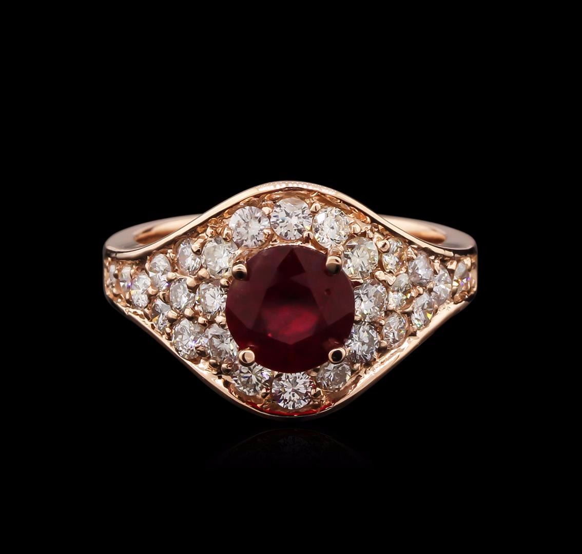 One electronically tested 14KT rose gold lady's cast fashion ring with a bright polish finish. The featured lady's ring has a shank measuring 3.14 millimeters wide. Identified with markings of "K14". Condition is new, good workmanship. Containing: One pro GAS Appraised at $4,745.00.
