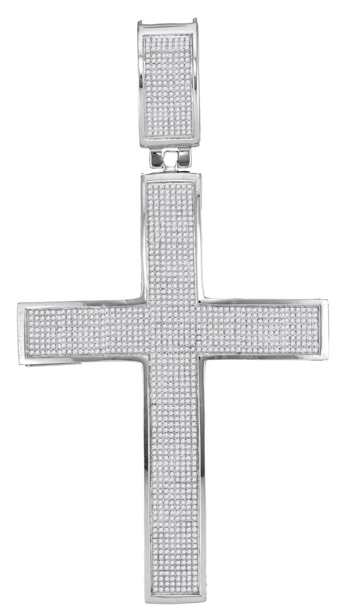 REF-259Y9V ---- 1.89 CTW Mens Natural Diamond Christian Roman Cross Charm Pendant 10K White Gold - SKU: GD67661